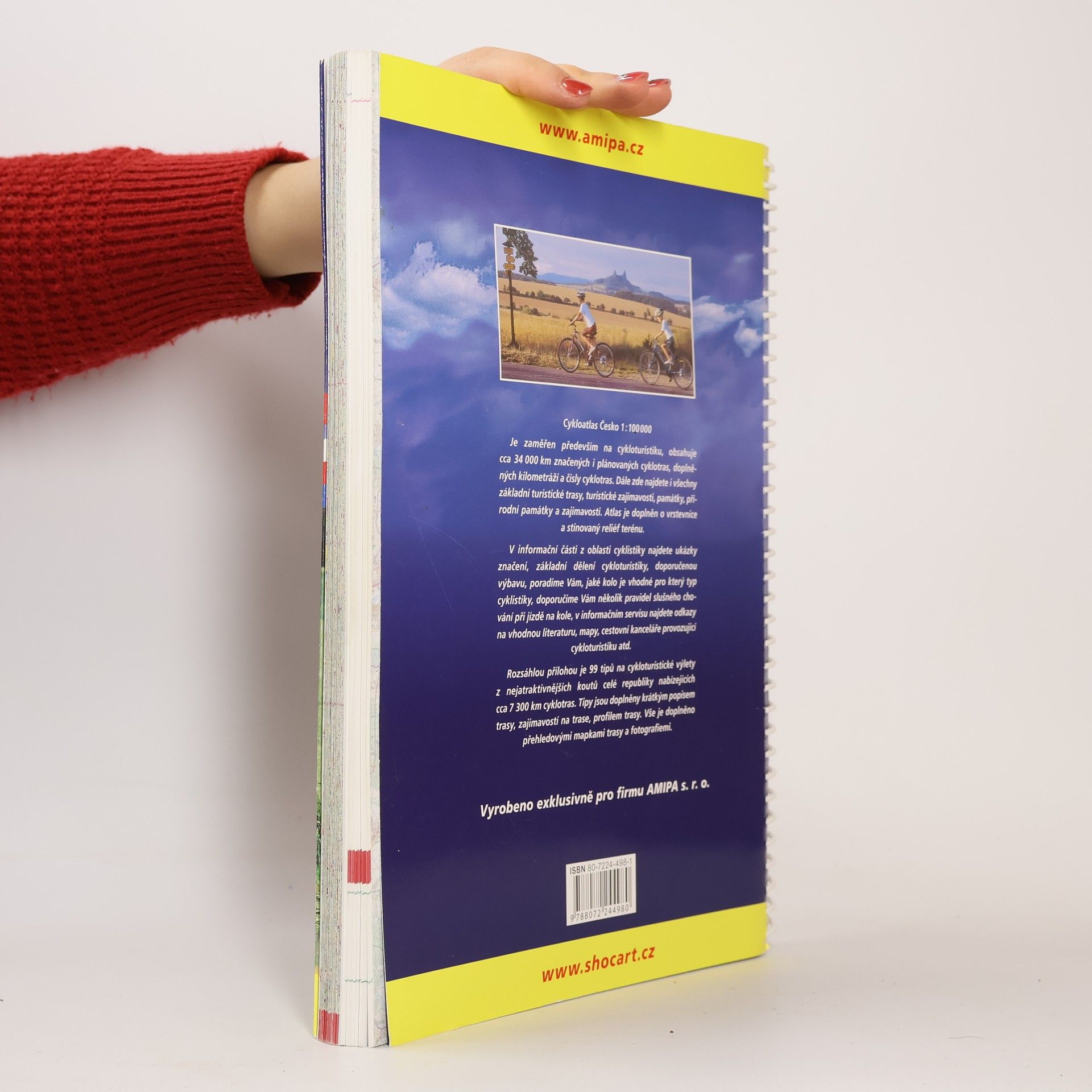 Cyklistický atlas České republiky v měřítku 1:100000. Obsahuje asi 34000 km cyklotras, doplněných jejich kilometráží. Jsou zde i všechny základní turistické trasy, zajímavosti a památky včetně přírodních. Mapy jsou doplněny o vrstevnice a stínování terénu. V textové části lze najít ukázky značení, základní dělení cykloturistiky, doporučenou výbavu, rady, které kolo je vhodné pro který typ cyklistiky. Jsou tu i doporučení ohledně pravidel slušného chování na kole. Součástí je informační servis s odkazy na vhodnou literaturu, mapy, cestovní kanceláře provozující cykloturistiku atd. Rozsáhlou přílohu tvoří 99 tipů na cykloturistické výlety z nejatraktivnějších koutů celé republiky nabízejících asi 7300 Km cyklotras. Tipy jsou obohaceny o krátký popis trasy a zajímavostí na trase a profil trasy. Vše doprovází přehledové mapky tras a fotografie.
