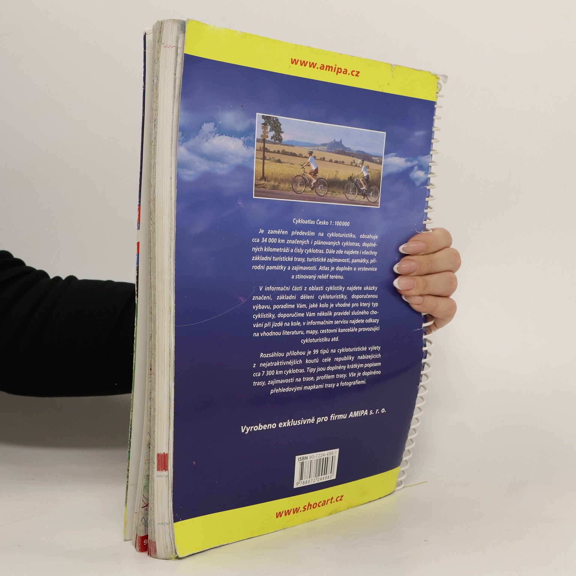 Cyklistický atlas České republiky v měřítku 1:100000. Obsahuje asi 34000 km cyklotras, doplněných jejich kilometráží. Jsou zde i všechny základní turistické trasy, zajímavosti a památky včetně přírodních. Mapy jsou doplněny o vrstevnice a stínování terénu. V textové části lze najít ukázky značení, základní dělení cykloturistiky, doporučenou výbavu, rady, které kolo je vhodné pro který typ cyklistiky. Jsou tu i doporučení ohledně pravidel slušného chování na kole. Součástí je informační servis s odkazy na vhodnou literaturu, mapy, cestovní kanceláře provozující cykloturistiku atd. Rozsáhlou přílohu tvoří 99 tipů na cykloturistické výlety z nejatraktivnějších koutů celé republiky nabízejících asi 7300 Km cyklotras. Tipy jsou obohaceny o krátký popis trasy a zajímavostí na trase a profil trasy. Vše doprovází přehledové mapky tras a fotografie.
