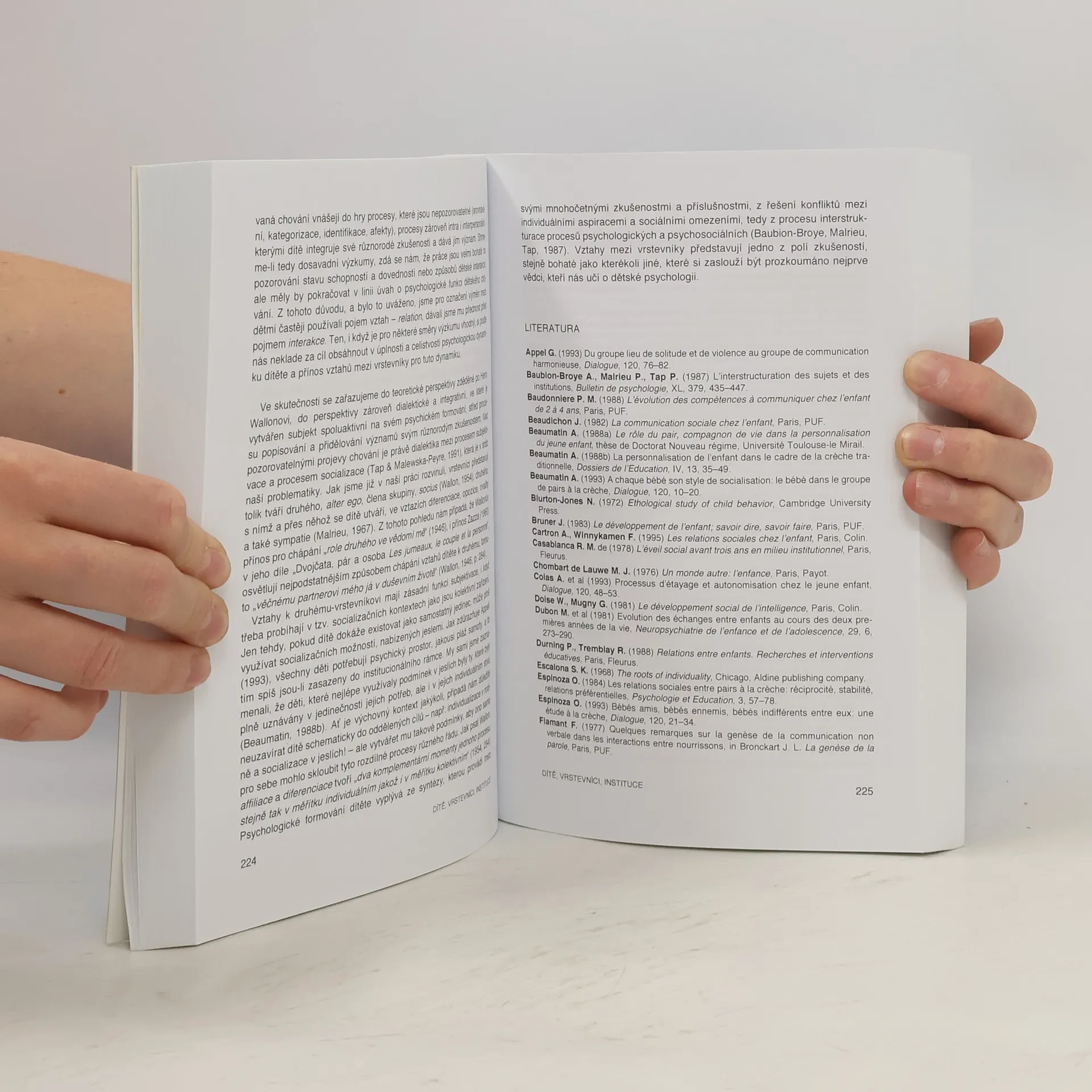 Monografie o vývojové psychologii dítěte v předškolním věku završuje desetiletou spolupráci katedry psychologie FF UK a skupiny dětských psychologů z Univerzity Le Mirail v Toulouse. Význam personálních vztahů pro dítě je popsán ve dvou odlišných věkových etapách 0?3 roky a 3?6 let. Autoři mapují vliv rodiny, vrstevnické skupiny a institucí na dítě, podrobně analyzují rozvoj jeho řeči. Studie rovněž zkoumají jak dítě řeší problémy, učí se vyrovnávat s novými životními nároky (netradiční je např. zařazení vývoje ?pojetí smrti? v předškolním věku). Texty jsou prezentovány vždy v českém i francouzském jazyce. Publikace je podnětná dvěma hledisky, vycházejícími z odlišné historie i celkového sociokulturního rámce vývoje dítěte v současné Francii a České republice.
