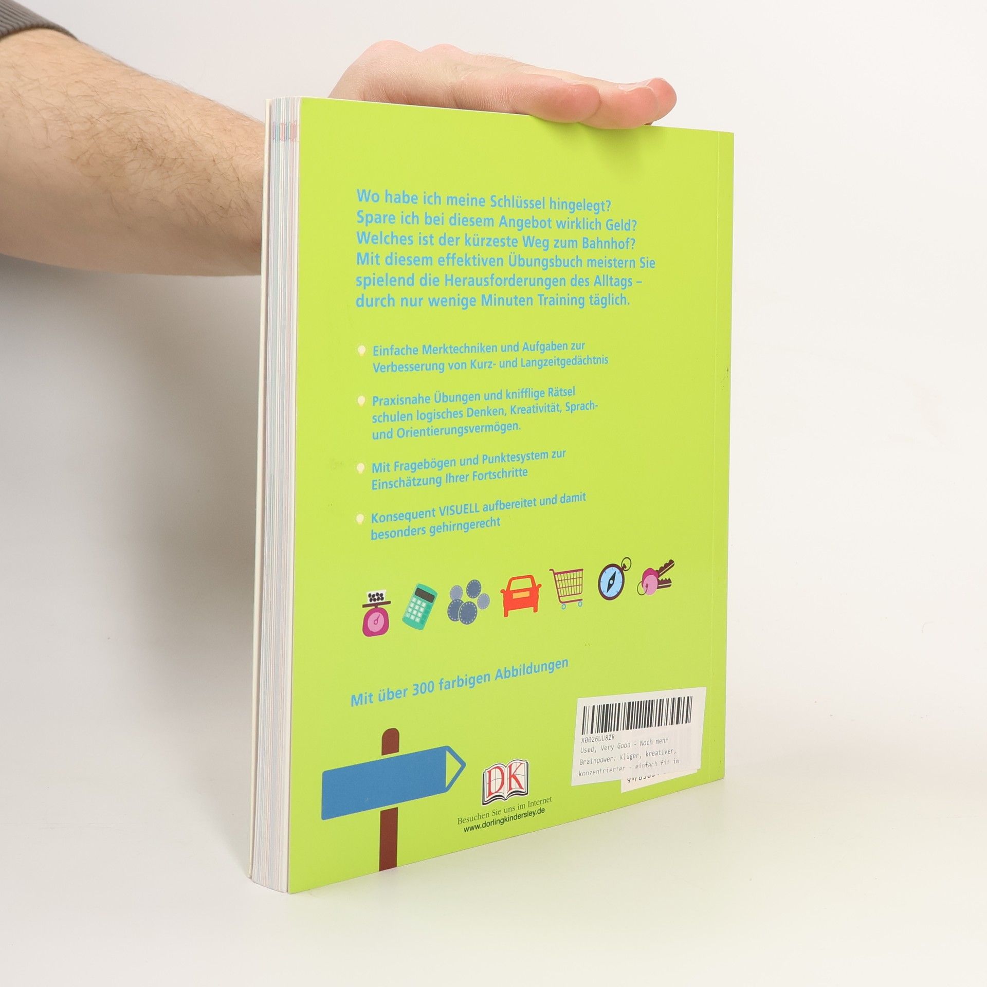 Wo habe ich meine Schlüssel hingelegt? Spare ich bei diesem Angebot wirklich Geld? Welches ist der kürzeste Weg zum Bahnhof? Mit diesem effektiven Übungsbuch meistern Sie spielend die Herausforderungen des Alltags - durch nur wenige Minuten Training täglich. Der Nachfolger von "Brainpower" bietet über 250 neue Übungen und Tipps zu allen Bereichen geistiger Fitness. Mit den unterhaltsamen Aufgaben und Rätseln schulen Sie spielend ihr Kurz-, Mittel- und Langzeitgedächtnis, die numerische, sprachliche und visuell-räumliche Intelligenz sowie das logische und kreative Denken. Ein Quiz am Beginn jedes Kapitels dient zur Bestandsaufnahme, mit einem Punktesystem werden der Erfolg bei den Übungen und der aktuelle Lernstand gemessen. Die visuelle Gestaltung mit über 300 Farbillustrationen spricht das Gehirn besonders an und ist für die unterschiedlichsten Lerntypen geeignet. Auch für Rätselfans ist das Buch eine Fundgrube kniffliger Kopfnüsse!