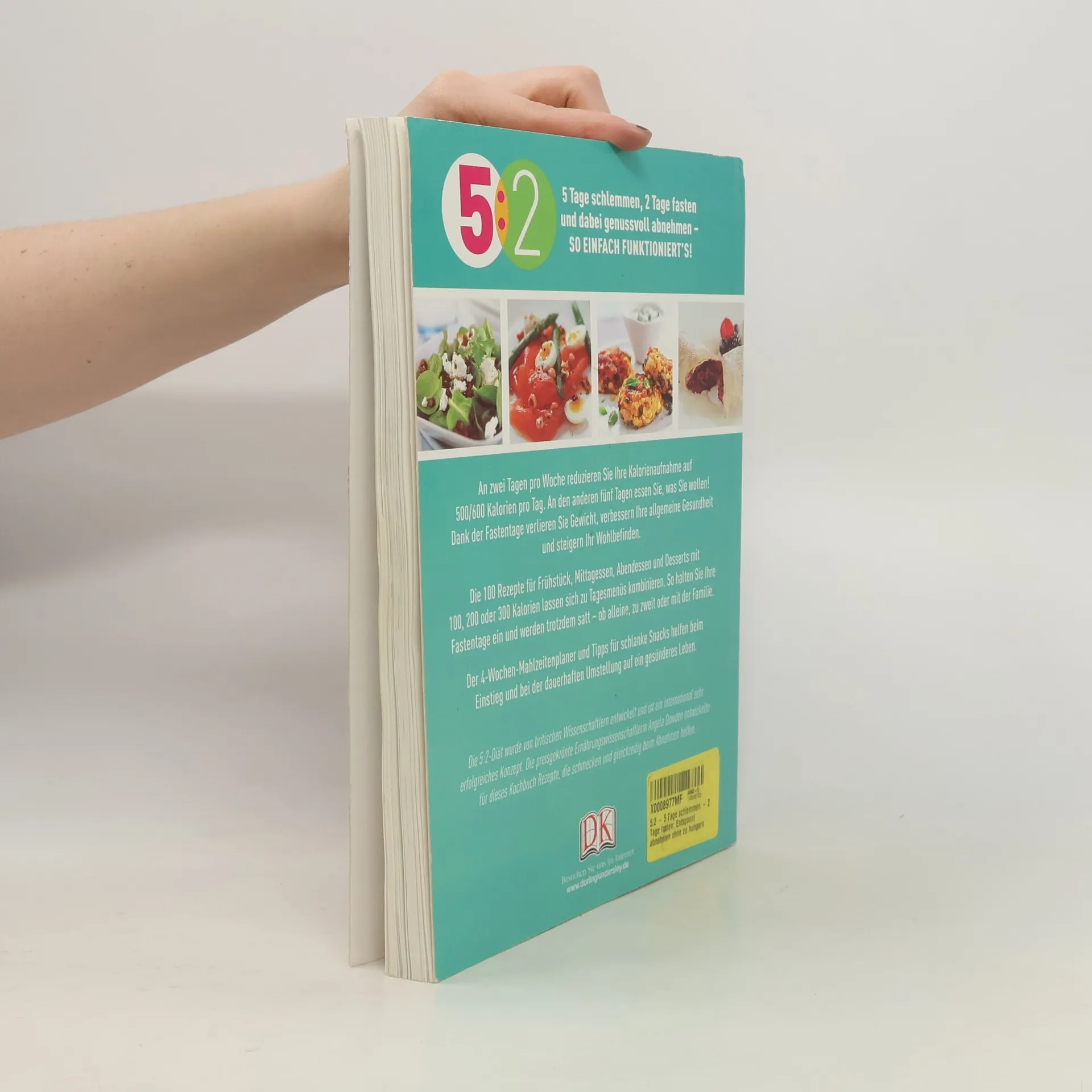 Entspannt abnehmen ohne zu hungern: Die neue Trend-Diät 5:2 begeistert nicht ohne Grund. Abnehmen von der ersten Woche an - wer wünscht sich das nicht? Das Konzept ist simpel: 5 Tage schlemmen und an 2 Tagen wird gefastet, mit 500600 Kalorien am Tag. Dank der Fastentage verlieren Sie Gewicht, verbessern Ihre allgemeine Gesundheit und steigern Ihr Wohlbefinden. Ob Blaubeer-Muffin, Kokos-Butternusskürbis-Suppe, Lasagne mit Auberginen oder Schokoladen-Orangen-Soufflés - die 100 Rezepte für Frühstück, Mittagessen, Abendessen und Desserts mit 100, 200 oder 300 Kalorien lassen sich zu Tagesmenüs kombinieren. So halten Sie Ihre Fastentage ein und werden trotzdem satt - ob alleine, zu zweit oder mit der Familie. Der 4-Wochen-Mahlzeitenplaner, Tipps für schlanke Snacks und eine Kalorientabelle helfen beim Einstieg und bei der dauerhaften Umstellung auf ein gesünderes Leben. Die 5:2-Diät wurde von britischen Wissenschaftlern entwickelt und ist ein international sehr erfolgreiches Konzept. Die preisgekrönte Ernährungswissenschaftlerin Angela Dowden entwickelte für dieses Kochbuch Rezepte, die schmecken und gleichzeitig beim Abnehmen helfen.