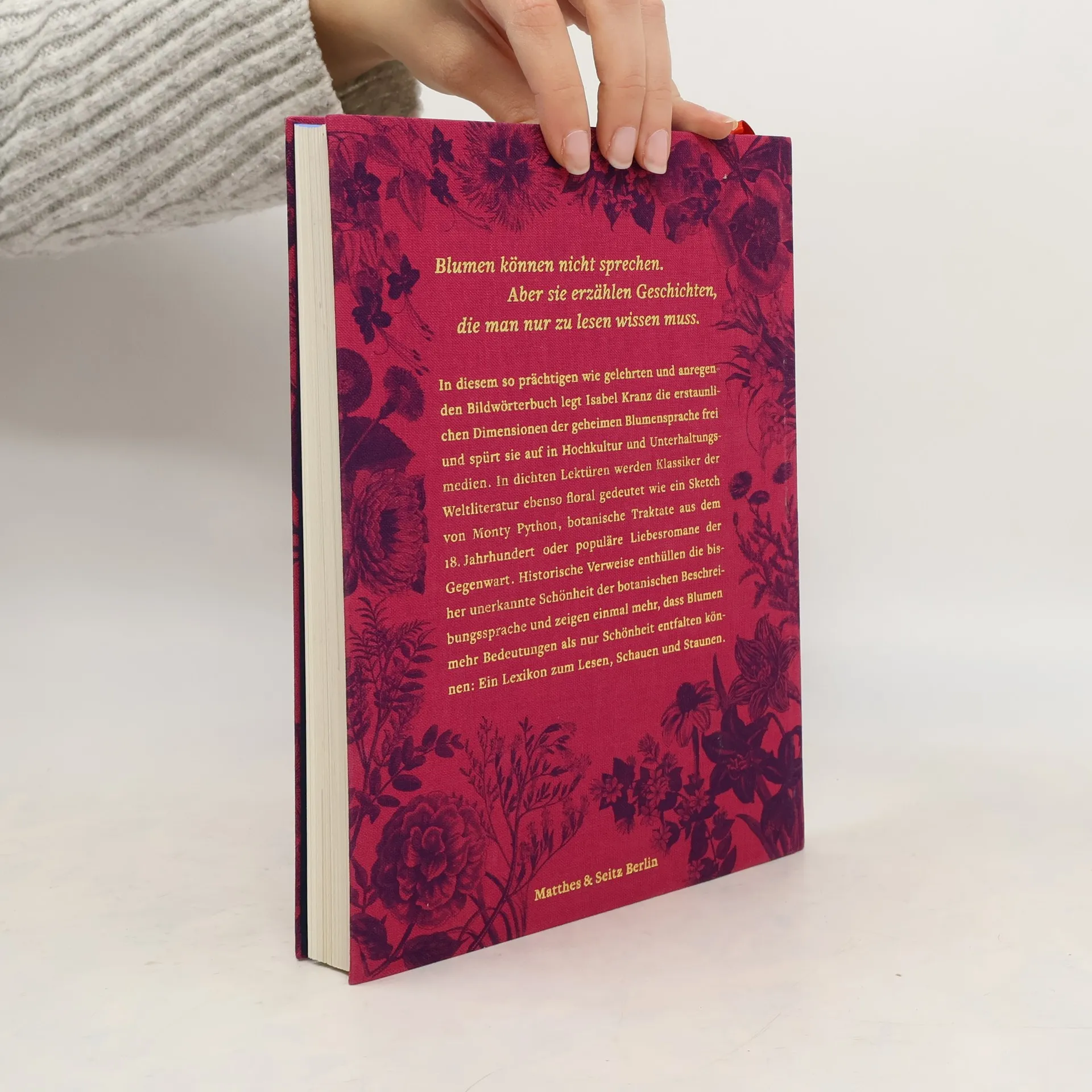 Wie alle Pflanzen können Blumen bekanntlich nicht sprechen. Doch sie erzählen Geschichten: über ihr Aussehen, ihre Entdecker, ihre heilenden oder giftigen Eigenschaften oder davon, wie sie einst in diese Welt gekommen sind. Dieses Wissen geben Blumen jedoch nicht direkt preis, sondern verstecken es in ihrem Namen oder verbergen es hinter Anekdoten. In Isabel Kranz’ Bildwörterbuch lebt die Tradition der Blumensprache fort: Sie spricht einzelnen Blüten symbolische Kraft zu und legt Regeln fest, nach denen Blumen als geheime Zeichen für Liebesbotschaften fungieren sollten. Doch Kranz geht es weniger um erotische Nachrichten als vielmehr darum, Blumen selbst als Leseanleitungen zu verstehen: In diesen Lektüren werden Klassiker der Weltliteratur ebenso floral gedeutet wie ein Sketch von Monty Python, botanische Traktate aus dem 18. Jahrhundert oder populäre Liebesromane der Gegenwart. Historische Verweise enthüllen die bisher unerkannte Schönheit der botanischen Beschreibungssprache. Einmal mehr erweist sich, dass Blumen den Schlüssel zu ihrer eigenen Geschichte immer schon selbst mitbringen. Man muss sie nur zu lesen wissen.