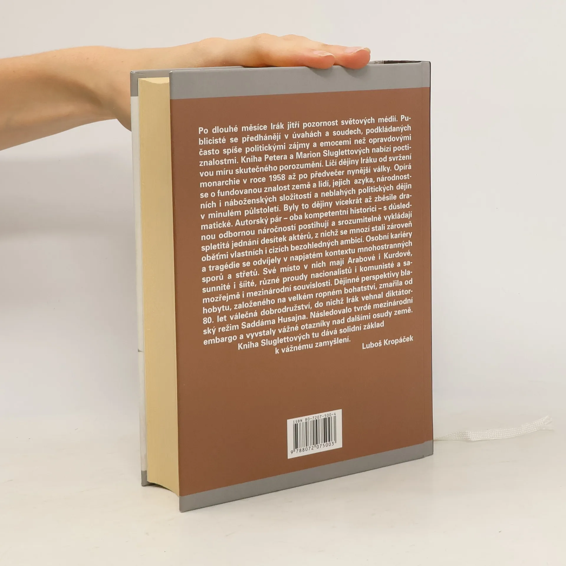 Publikace dvou významných odborníků na Střední východ představuje v současnosti nejobsáhleji a nejprecizněji pojednávající dílo o moderní historii Iráku - těžce sužované zemi, kterou její diktátor Saddám Husajn vystavil těžkým zkouškám - iránsko-irácké válce, válce v Zálivu i její proměně v neuralgický bod globální bezpečnosti. Autoři tak poprvé v ucelené knižní formě odhalují zrod moderního iráckého státu od roku 1920 až do začátku 21. století, přičemž důraz kladou na období od roku 1958, tj. od svržení monarchie a postupného nástupu a mocenské konsolidace režimu Saddáma Husajna; všímají si jeho schopnosti přežít nejen těžkou vojenskou porážku z roku 1991, ale i několik pokusů o jeho fyzickou likvidaci i účinků tvrdých hospodářských sankcí ze strany Západu. Kniha se zabývá rovněž postupem vůči pronásledované kurdské a šíitské menšině, důsledky znárodnění ropného průmyslu a rozebírá také vztahy se sousedními státy. Publikace tak nabízí porozumění povaze irácké politiky i pozadí, jež usnadňuje přežívání Saddámova represivního režimu a přispívá k hlubšímu pochopení problémům této oblasti. Peter Sluglett pro české vydání napsal nový úvod, shrnující poslední události.
