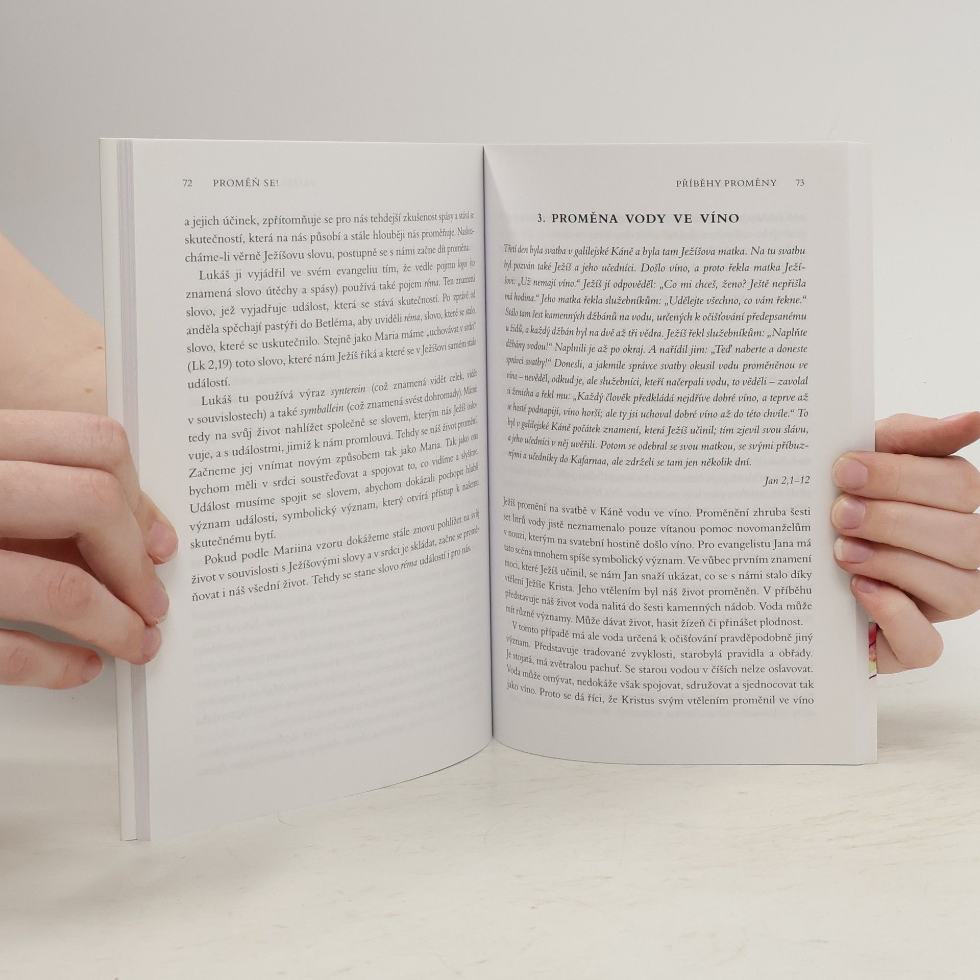 Zaklínadlem moderní doby je změna – v životě, zaměstnání, ve vztazích, v řízení podniku. Anselm Grün však varuje – změna sugeruje přesvědčení, že to, co bylo, je špatné, a teprve nyní přichází s něčím novým konečně to dobré. V životě ovšem takový přístup nefunguje a může být naopak velmi nebezpečný. Pro Grüna je mnohem inspirativnější proměna, proces, kdy nedochází k zavržení minulého, ale k jeho transformaci tak, aby život mohl dál plynout. Tento princip Grün opírá nejen o pohádková vyprávění o proměnách všeho druhu, o důležitost pojmu proměny v psychologii C. G. Junga, ale především o biblická vyprávění. V nich nachází hlubokou inspiraci a zdroj obrazů, které mohou každého člověka motivovat k tomu, aby i on proměnil své srdce a život a měl odvahu k novému vykročení správným směrem, aby uchopil nejen své silné, ale i slabé stránky, bolesti a selhání a použil je k vnitřní transformaci.