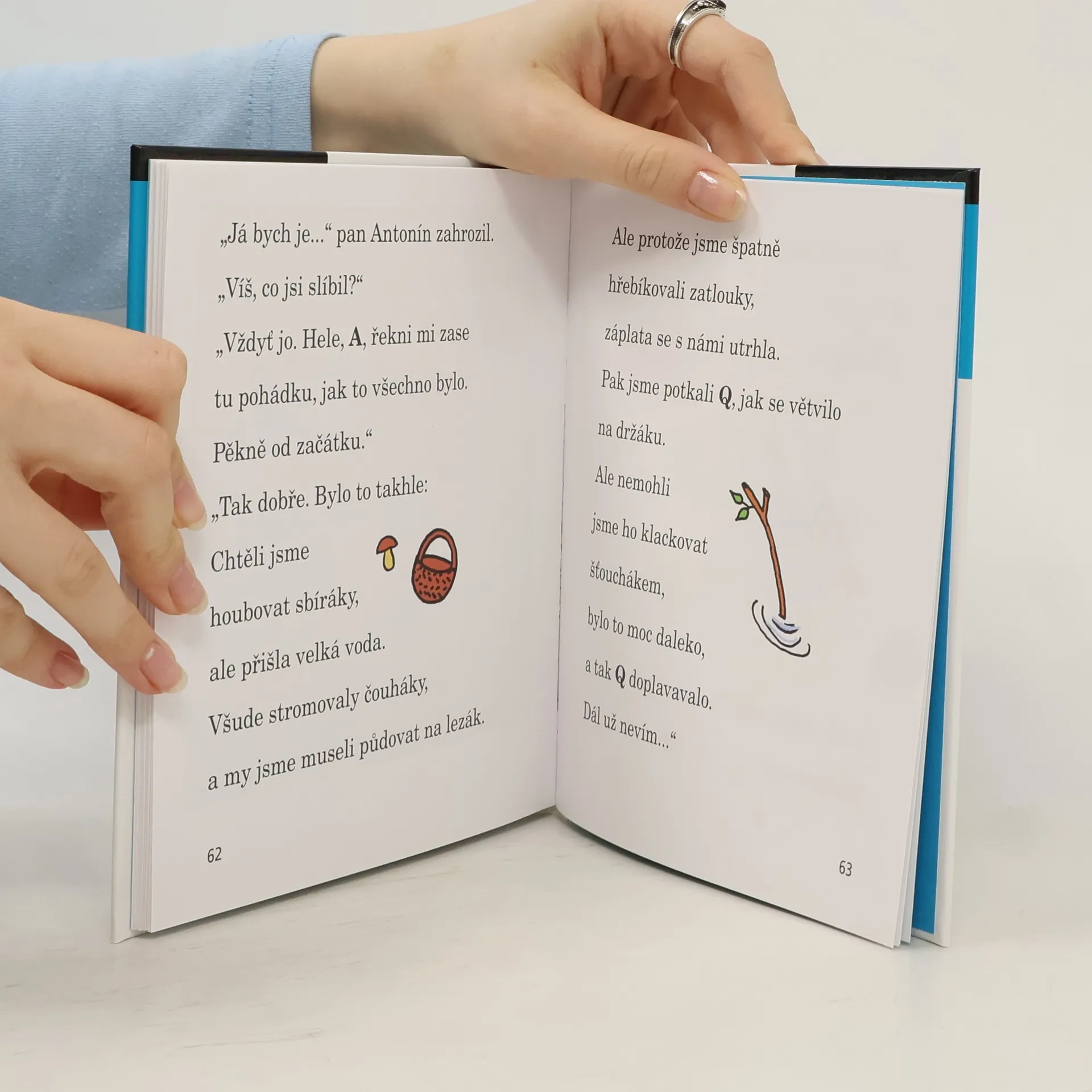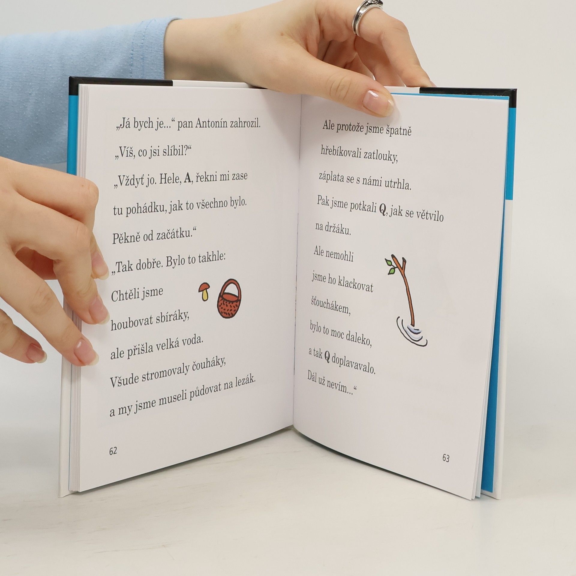 Pět štětin mu trčí na šešulce a stejné strniště má na bradě. Poznali jste pana Antonína? Od té doby, co ho písmenka vzala mezi sebe a A ho pozvalo k sobě domů, se mu svět zdá mnohem veselejší. Ale jednoho dne do jejich domečku vtrhne velká voda – přímo povodeň! A navíc si pan Q pořád stěžuje, že se písmenkům nehodí do žádného slova. To je nadělení, jak jen tohle všechno dopadne? Volné pokračování knížek Pohádky o písmenkách a Písmenka a pan Antonín.