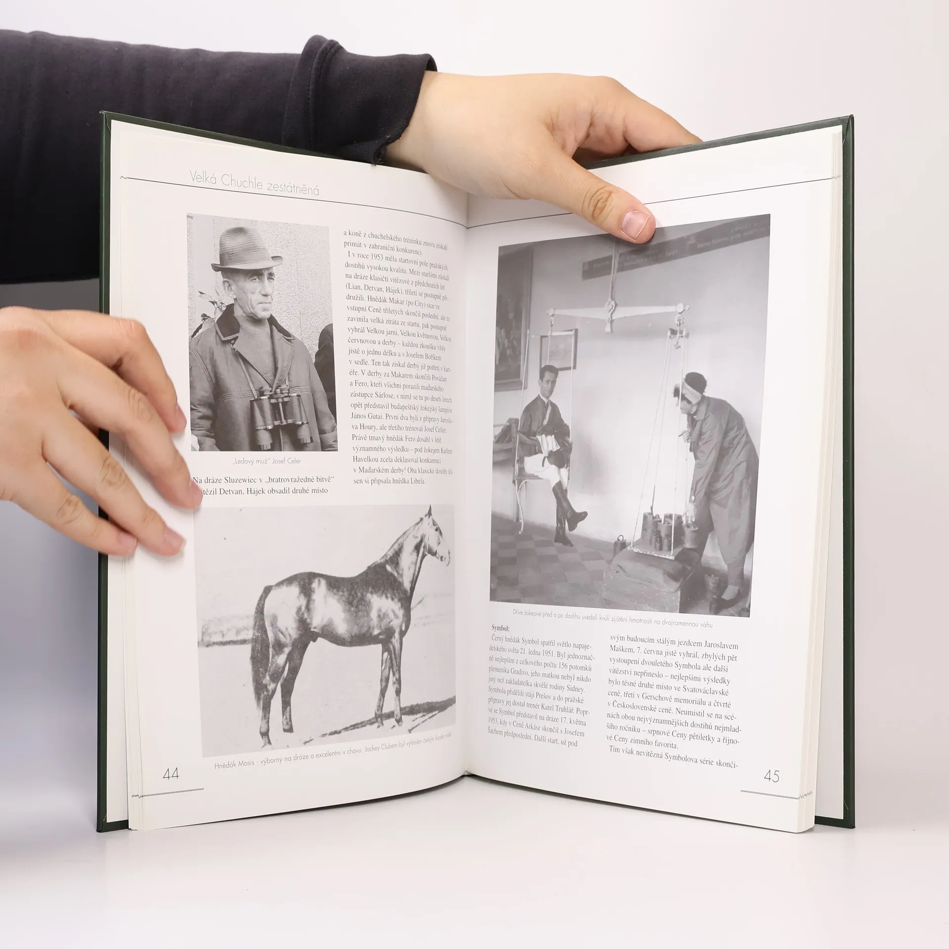 Historie závodiště, které zahájilo provoz v roce 1906, je rozdělena chronologicky do sedmi kapitol a končí srpnovou povodní v roce 2002. Kniha obsahuje přehled a vzpomínky nejúspěšnějších žokejů a trenérů, dále přehled tradičních dostihů chuchelského dostihového kalendáře, listiny vítězů nejvýznamnějších dostihů, vítěze československých a českých rovinových šampionátů od roku 1921 a dostihový slovníček. Příloha s barevnými fotografiemi šestnácti koňských šampiónů z poslední doby.