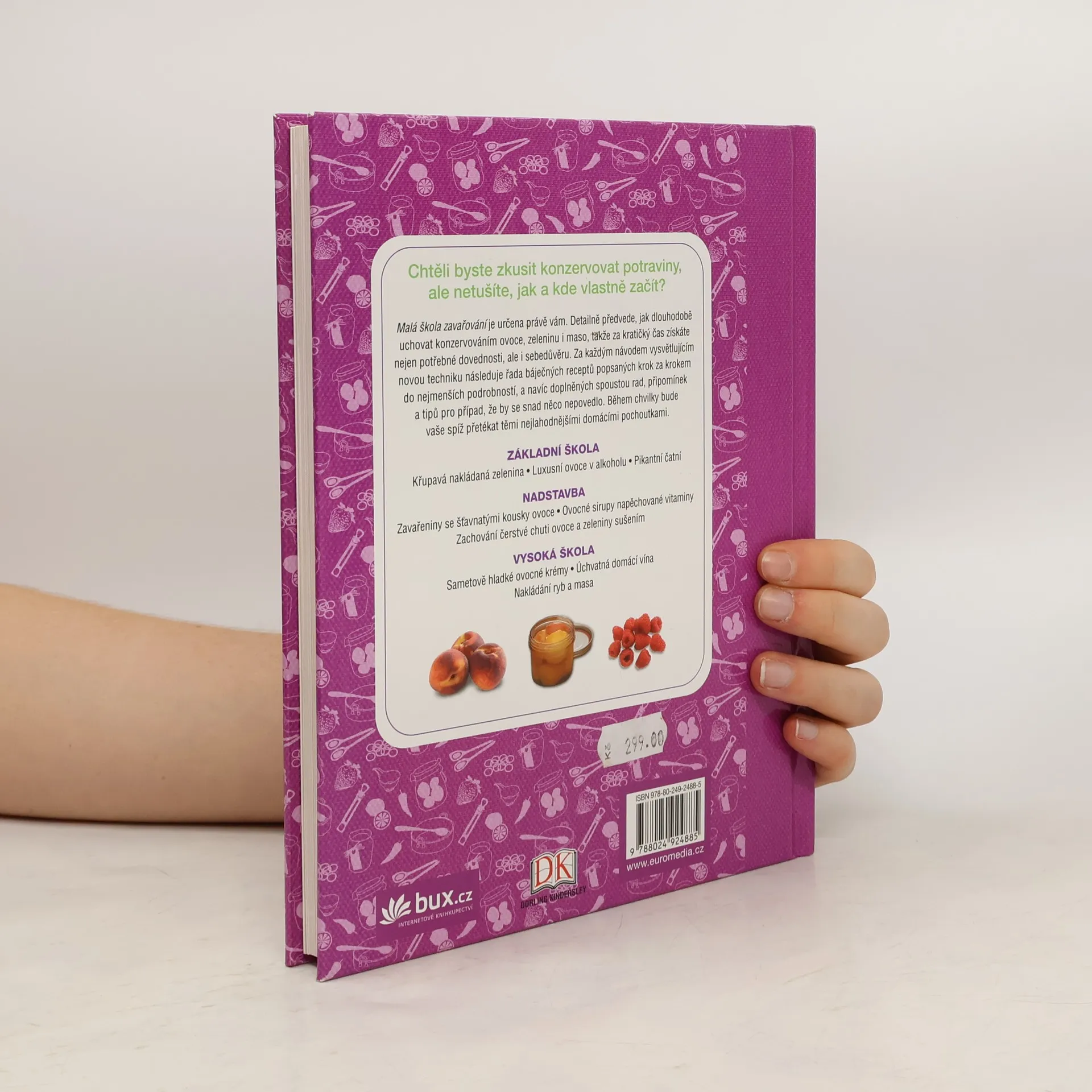 Všechno, co potřebujete k úspěchu Malá škola zavařování ukáže, jak zavařovat, mrazit, sušit a nakládat ovoce, zeleninu i maso, jak připravit čatní, marmelády, ovocné krémy, rosoly, želé či alkoholické nápoje, jak nakládat ryby nebo připravit úžasnou šunku. Za každým návodem vysvětlujícím novou techniku následuje řada báječných receptů popsaných krok za krokem, a navíc doplněných spoustou rad, připomínek a tipů. Během chvilky bude vaše spíž přetékat těmi nejlahodnějšími domácími pochoutkami, které se hned tak nezkazí.