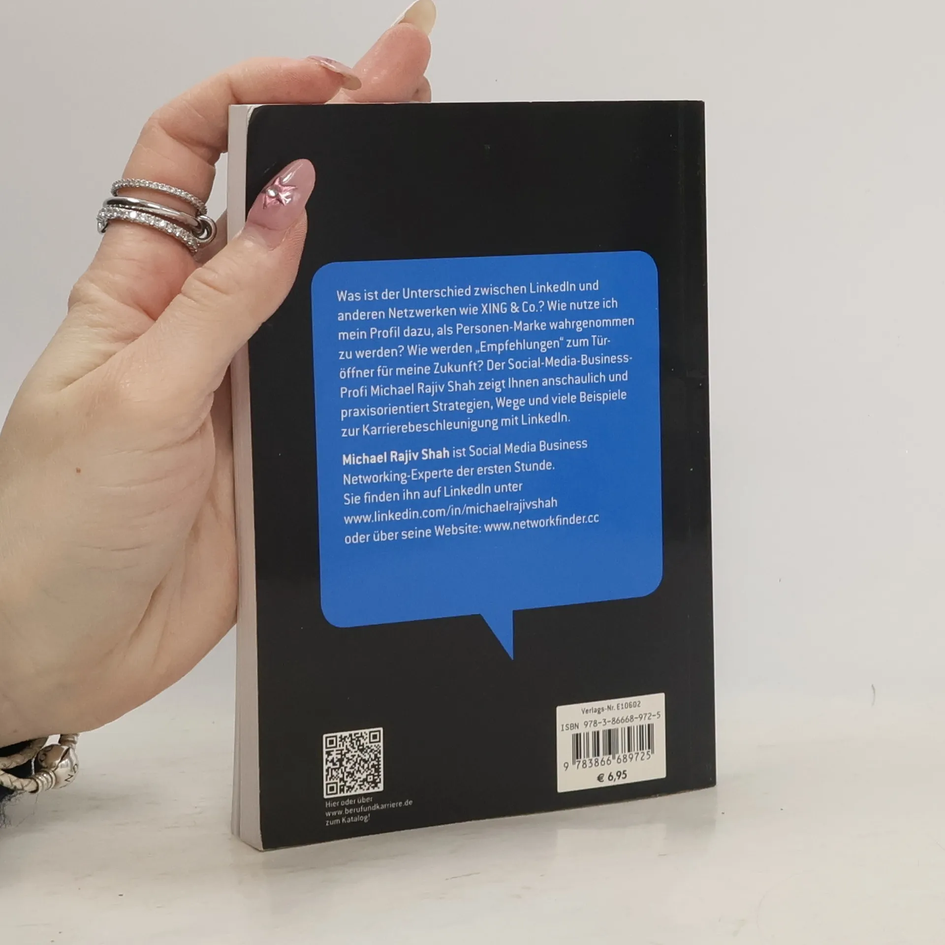 Das Netzwerk für Ihre Karriere Was ist der Unterschied zwischen LinkedIn und anderen Netzwerken wie XING, Facebook & Co.? Wie nutze ich mein Profil dazu, als Personen-Marke wahrgenommen zu werden? Was macht Empfehlungen zum Türöffner für meine Zukunft? Der Social-Media-Business-Profi Michael Rajiv Shah zeigt Ihnen Strategien, Wege und viele Beispiele zur Karrierebeschleunigung. Außerdem: Personal Branding, Kontaktmanagement, Recherche, Akquisition mit LinkedIn u.v.m. Wenn Sie Ihre berufliche Zukunft im internationalen Umfeld sehen, kommen Sie langfristig an LinkedIn nicht vorbei.