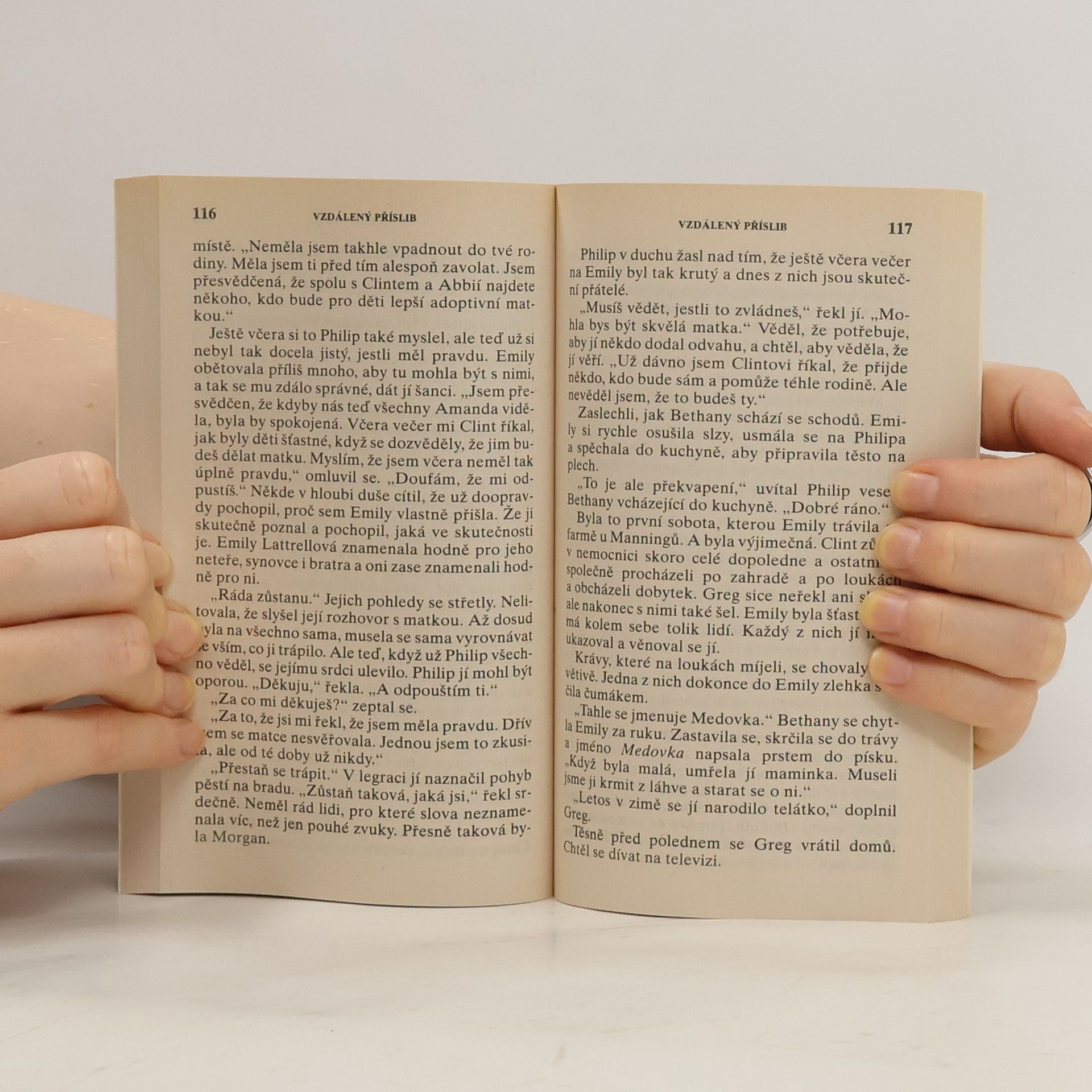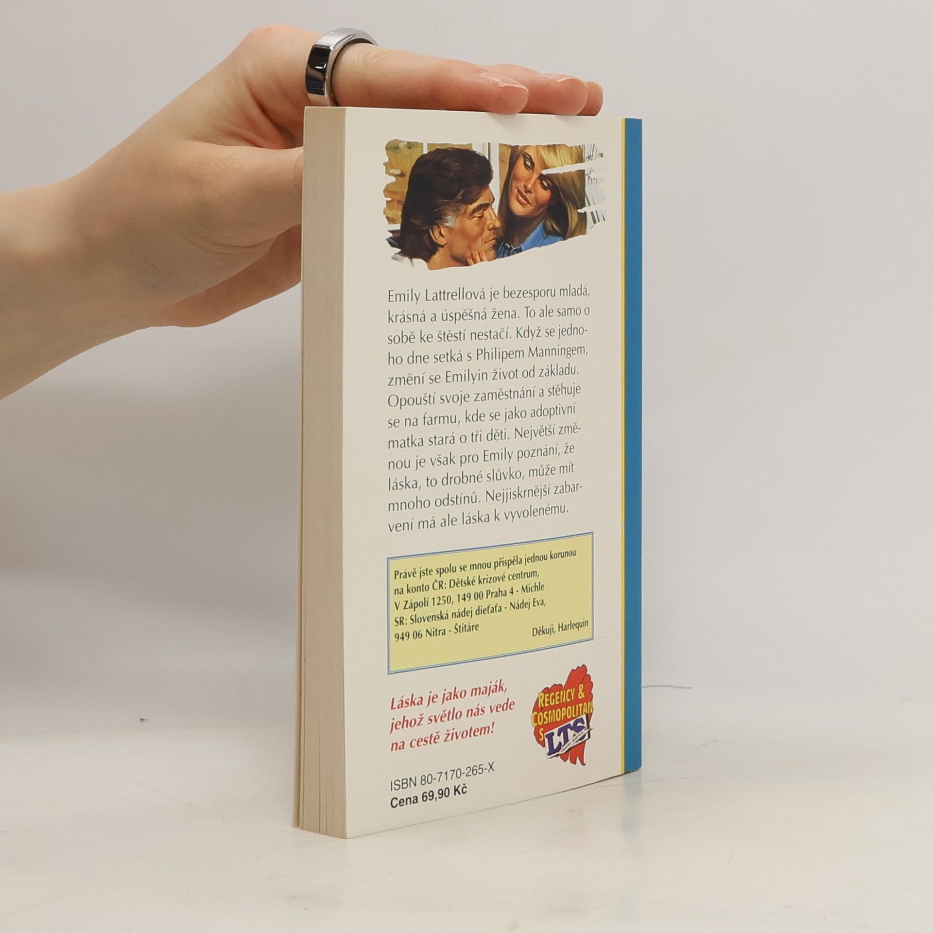 Emily Lattrellová je bezesporu mladá, krásná a úspěšná žena. To ale samo o sobě ke štěstí nestačí. Když se jednoho dne setká s Philipem Manningem, změní se Emilyin život od základu. Opouští svoje zaměstnání a stěhuje se na farmu, kde se jako adoptivní matka stará o tři děti. Největší změnou je však pro Emily poznání, že láska, to drobné slůvko, může mít mnoho odstínů. Nejjiskrnější zabarvení má ale láska k vyvolenému.