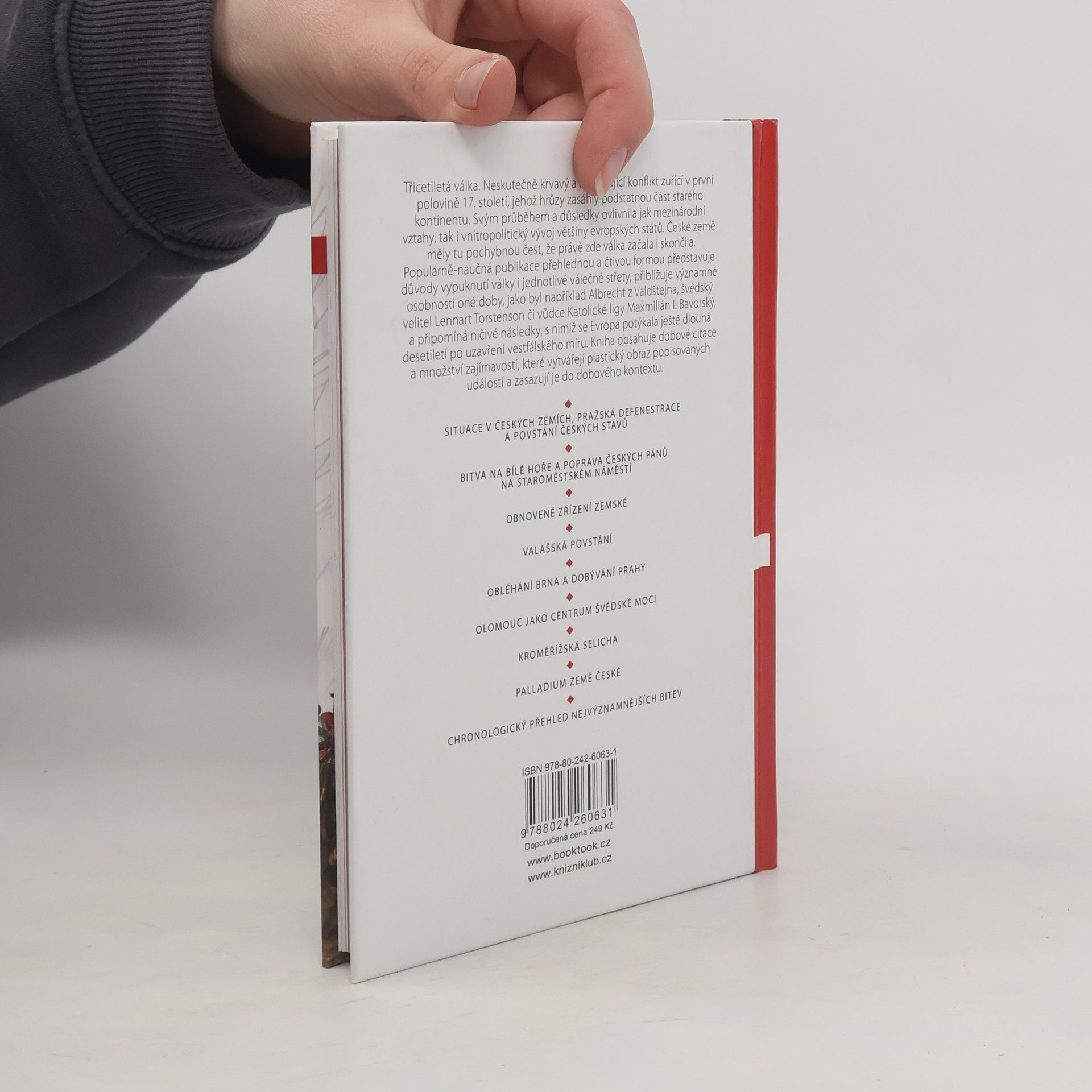 Populárně-naučná publikace pro širokou veřejnost přináší čtivou a srozumitelnou formou informace o třicetileté válce, která v 17. století zdevastovala podstatnou část evropského kontinentu včetně českých zemí. Autoři si všímají důležitých aspektů, ať už jde o důvody vypuknutí tohoto krvavého konfliktu, jednotlivé válečné střety, významné osobnosti nebo ničivé následky. Kniha obsahuje citace a množství doplňujících informací, které dohromady vytvářejí čtenářsky plastičtější obraz popisovaných událostí a zasazují je do dobového kontextu