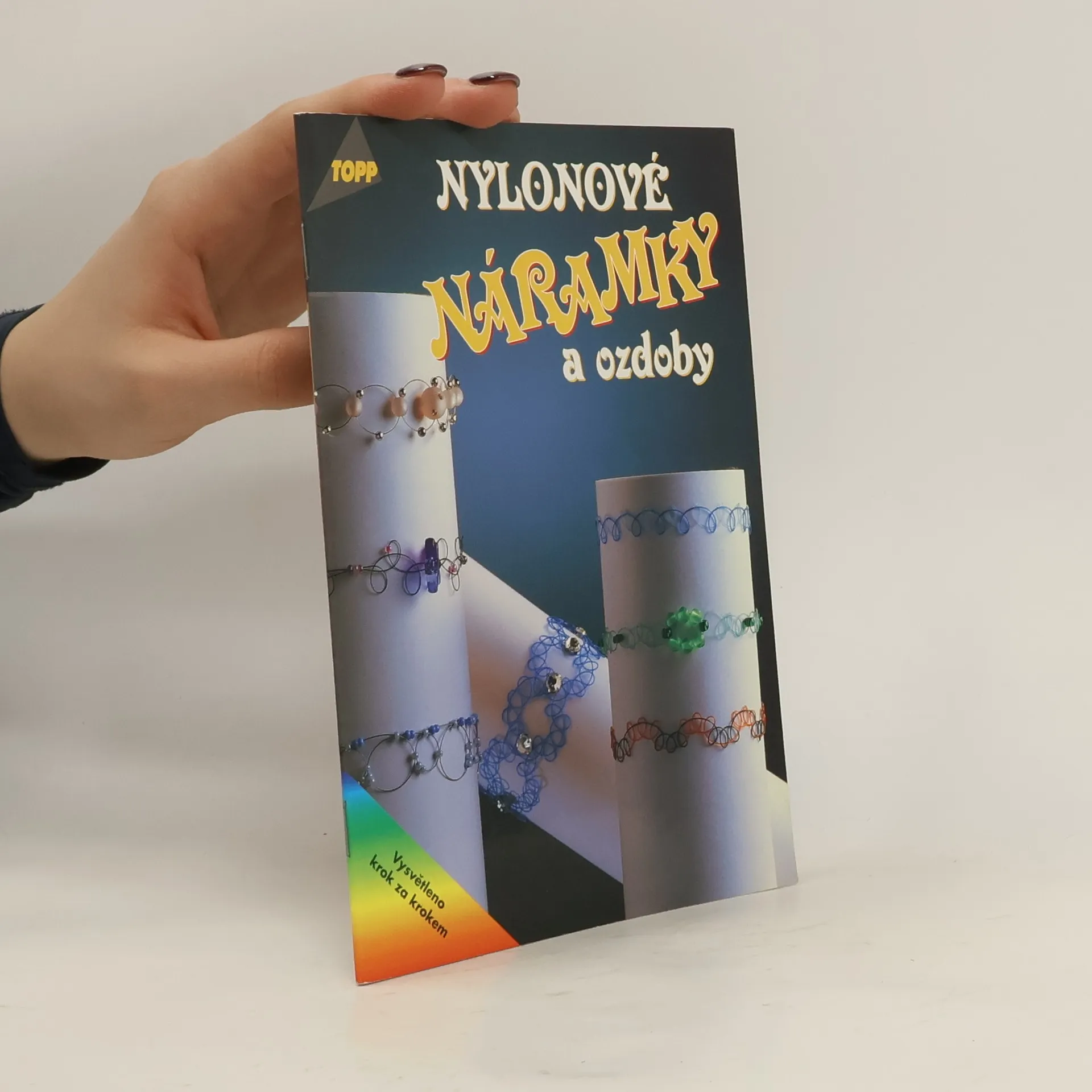 Nylonové náramky a ozdoby, které zhotovíte z nylonových nití nebo vlasců, se hodí ke každé příležitosti. Technika vázání náramků je velice jednoduchá a kombinací různobarevných nití získáte skutečně moderní a originální ozdoby na krk, ruku, nohu nebo břicho. Náramkům dodají kouzlo malé barevné korálky a štrasové kamínky. Pro všechny věkové kategorie.