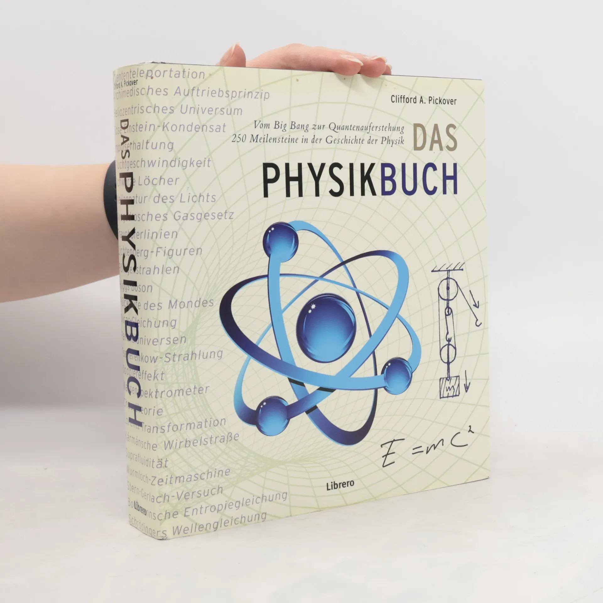 Sind Reisen durch die Zeit möglich? Wie wiegt man die Erde? Was sind Weiße und Schwarze Zwerge? Diese Fragen werden in einem reich illustrierten Werk beantwortet, das die 250 größten Errungenschaften der Physik beleuchtet. Autor Clifford A. Pickover führt die Leser auf eine faszinierende Reise durch die grundlegende Wissenschaft, die das Gewebe unserer Realität erforscht. Die Themen reichen von kuriosen Erfindungen wie dem „Trinkvogel“ bis zu bedeutenden Meilensteinen in Ingenieurswissenschaften, angewandter Physik und Astrophysik sowie philosophischen Überlegungen wie der „Nebularhypothese“. Das Buch beginnt mit dem Big Bang vor 13,7 Milliarden Jahren und endet mit der „Quantenauferstehung“ in über 100 Billionen Jahren. Pickover behandelt eine Vielzahl von Themen, darunter Dunkle Energie, Paralleluniversen, den Dopplereffekt und Maxwells Dämon. Berühmte Formeln und bahnbrechende Konzepte werden durch praktische Beispiele und biografische Details von Größen wie Isaac Newton, Marie Curie und Albert Einstein ergänzt. Die kurzen, leicht verständlichen Einträge sind chronologisch angeordnet und werden durch passende Abbildungen begleitet, sodass sie in wenigen Minuten gelesen werden können.