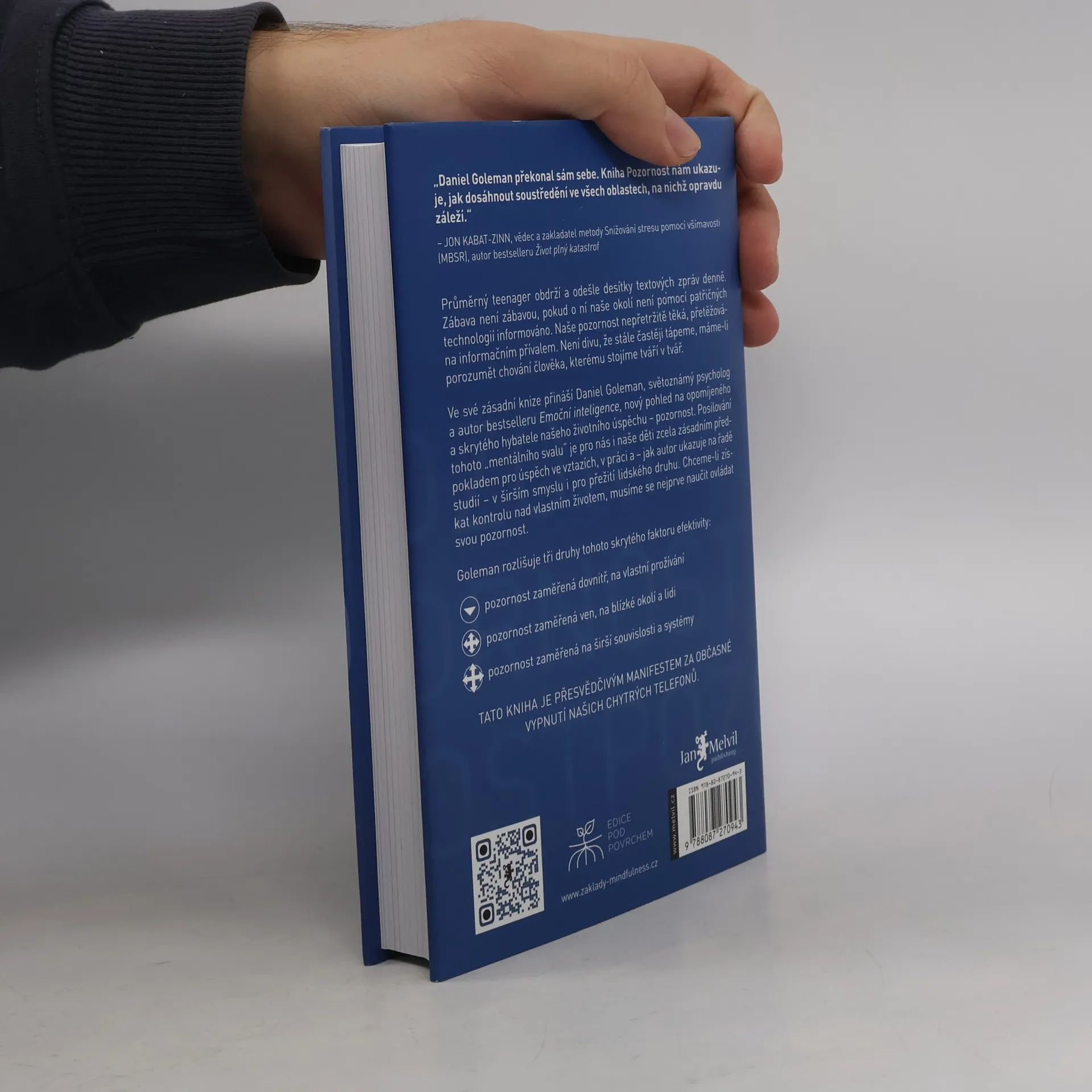 Kniha Pozornost – Skrytá cesta k dokonalosti je o životě v éře neustálého vyrušování, o klíčovém vlivu soustředění na náš úspěch i pocit štěstí a také o hledání nástrojů, jak zvýšit soustředění uprostřed vřavy moderního života. Díky jedinečnému vhledu a erudici přináší Daniel Goleman pozoruhodné, zásadní, čtivé, byť ne vždy radostné čtení a provází čtenáře objevnou cestou, jejímž cílem je znovuovládnutí naší pozornosti. Tato knížka nemusí, ale může změnit váš život. Pokud se jí to podaří, změní skrze vás celý svět.