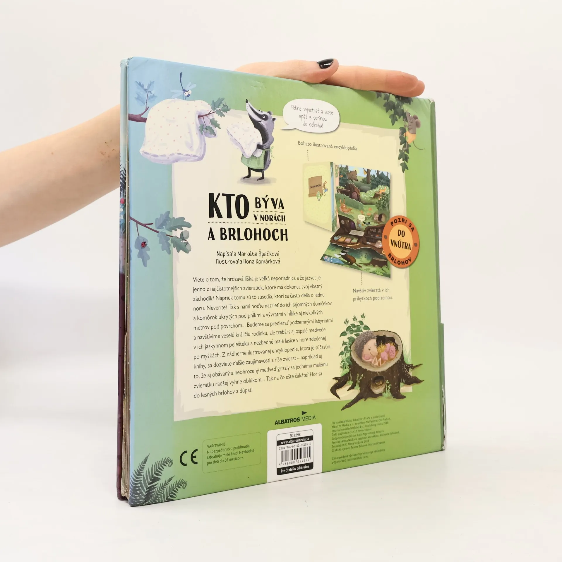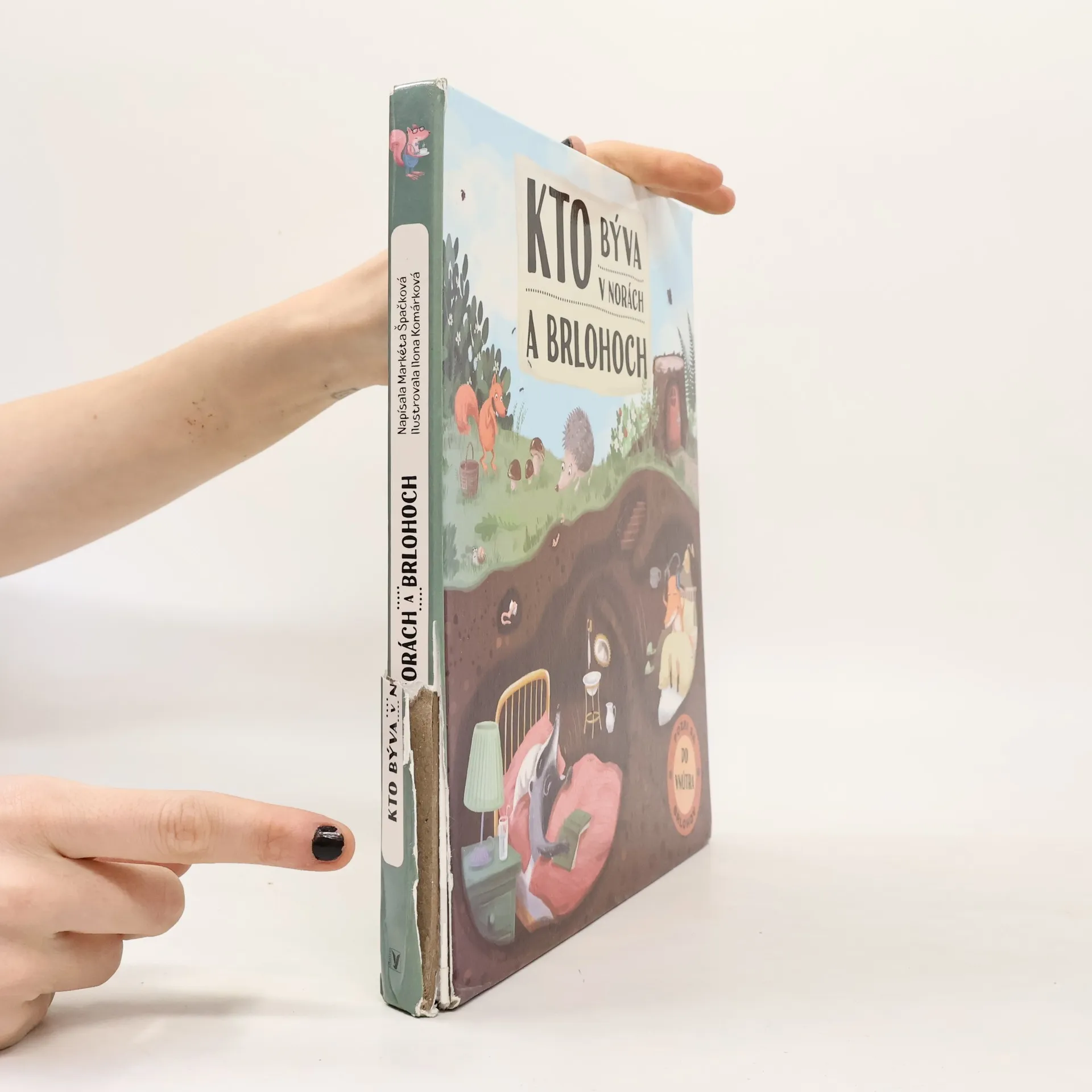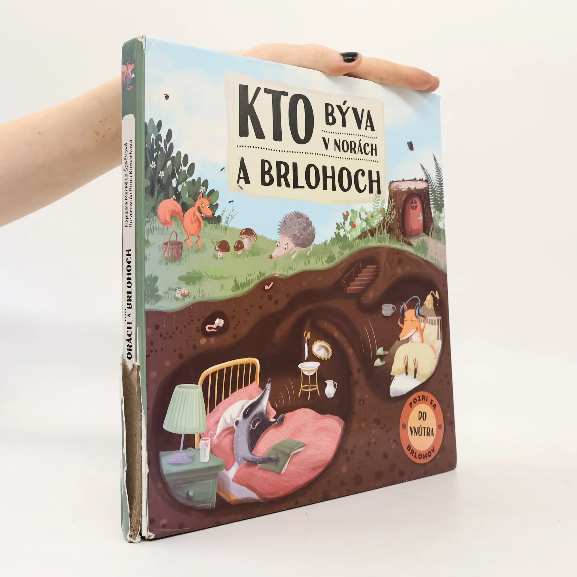 "Pozri sa do vnútra brlohov Viete o tom, že hrdzavá líška je veľká neporiadnica a že jazvec je jedno z najčistotnejších zvieratiek, ktoré má dokonca svoj vlastný záchodík? Neveríte? Tak s nami poďte nazrieť do ich tajomných domčekov a komôrok ukrytých pod pníkmi a vývratmi v hĺbke aj niekoľkých metrov pod povrchom... Budeme sa predierať podzemnými labyrintmi a navštívime veselú králičiu rodinku, ale trebárs aj ospalé medvede v ich jaskynnom pelešteku a nezbedné malé lasice v nore zdedenej po myškách.