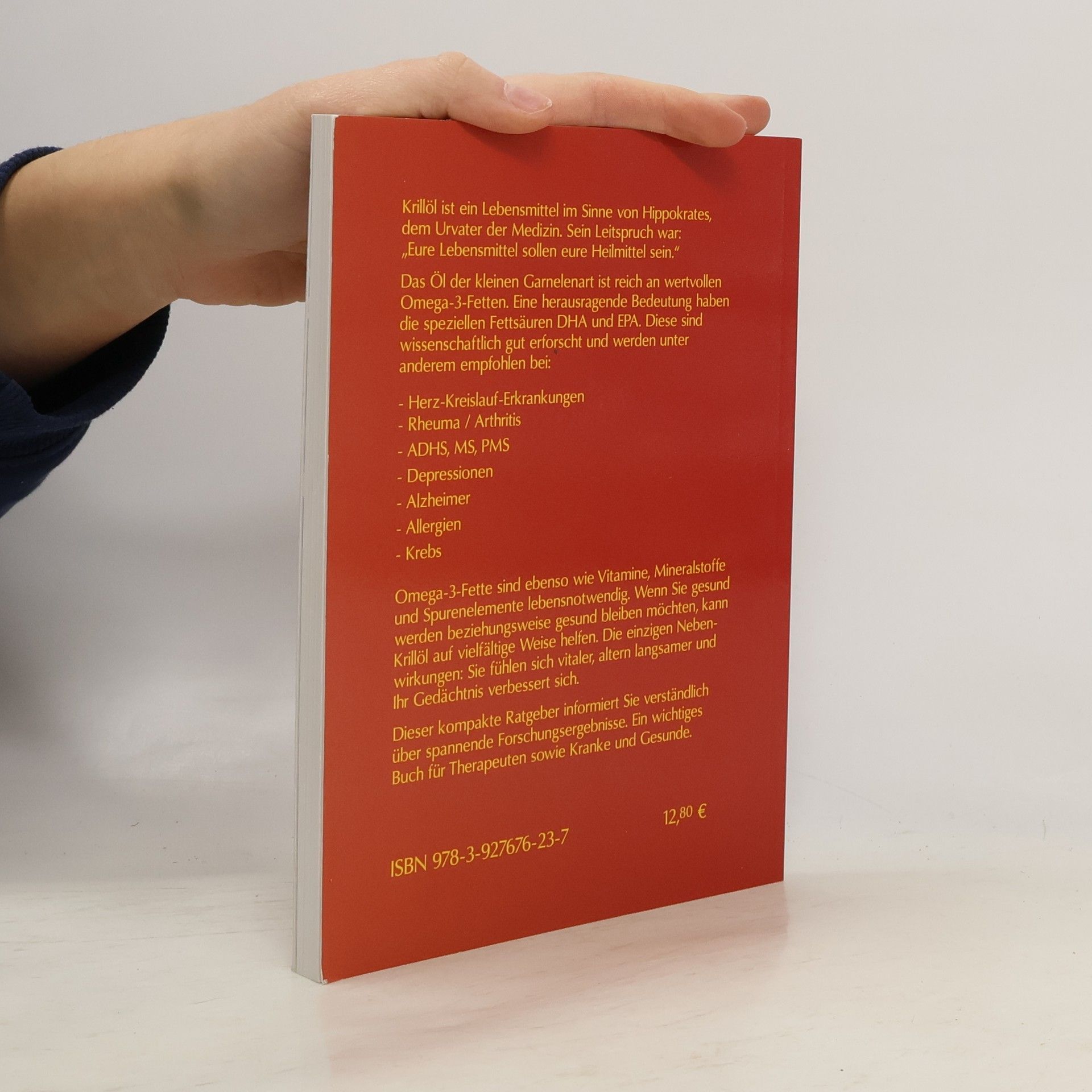 Krill-Öl mit herausragender Bedeutung der speziellen Fettsäuren DHA und EPA. Empfohlen bei Herz-Kreislauferkrankungen, Rheuma/Arthritis, ADHS, MS, PMS, Depressionen, Alzheimer, Allergien und Krebs.