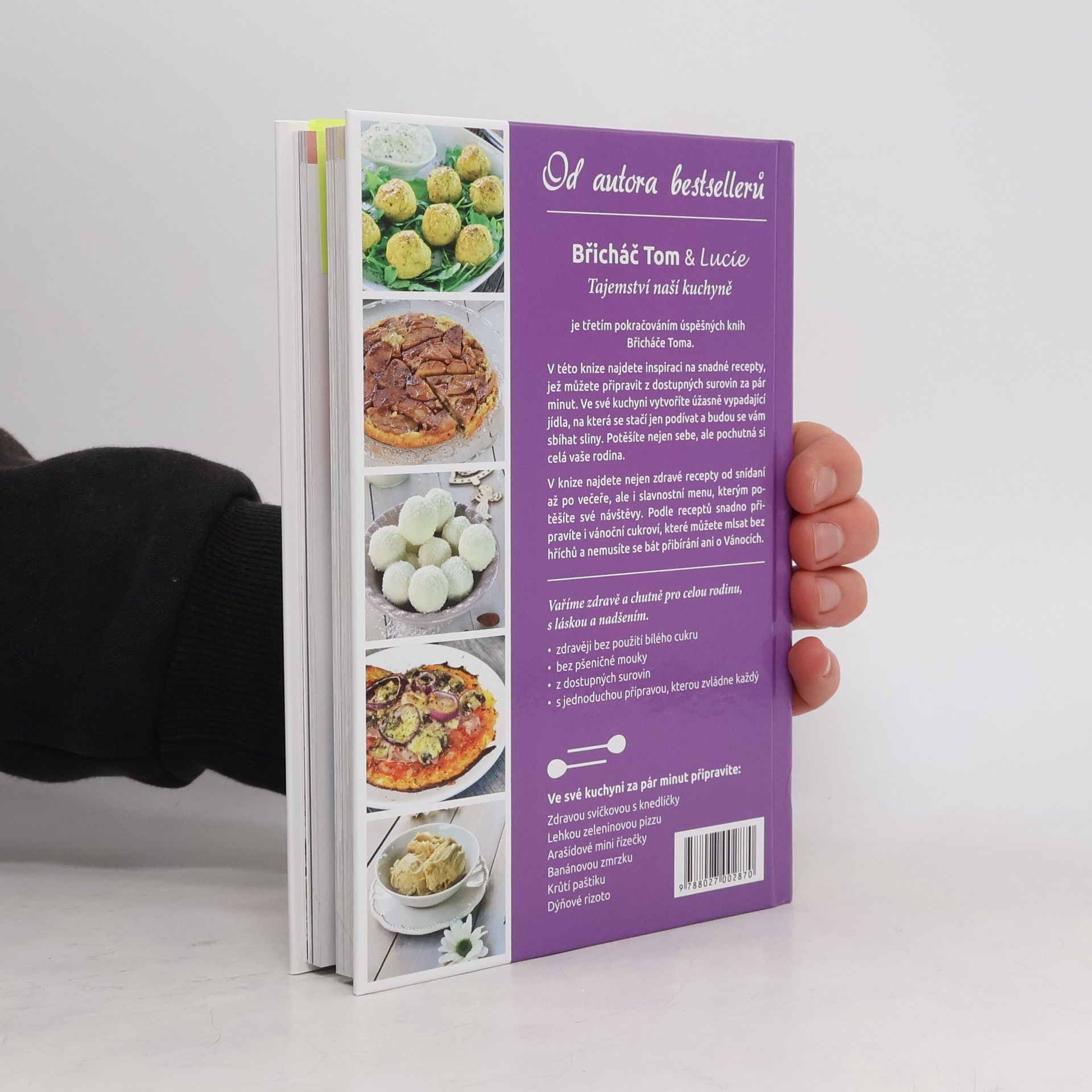 Je třetím pokračováním úspěšných knih Břicháče Toma. V této knize najdete inspiraci na snadné recepty, jež můžete připravit z dostupných surovin za pár minut. Ve své kuchyni vytvoříte úžasně vypadající jídla, na která se stačí jen podívat a budou se vám sbíhat sliny. Potěšíte nejen sebe, ale pochutná si celá vaše rodina. V knize najdete nejen zdravé recepty od snídaní až po večeře, ale i slavnostní menu, kterým potěšíte své návštěvy. Podle receptů snadno připravíte i vánoční cukroví, které můžete mlsat bez hříchů a nemusíte se bát přibírání ani o Vánocích. Vaříme zdravě a chutně pro celou rodinu, s láskou a nadšením. - zdravěji bez použití bílého cukru - bez pšeničné mouky - z dostupných surovin - s jednoduchou přípravou, kterou zvládne každý Ve své kuchyni za pár minut připravíte: - Zdravou svíčkovou s knedlíčky - Lehkou zeleninovou pizzu - Arašídové mini řízečky - Banánovou zmrzku - Krůtí paštiku - Dýňové rizoto