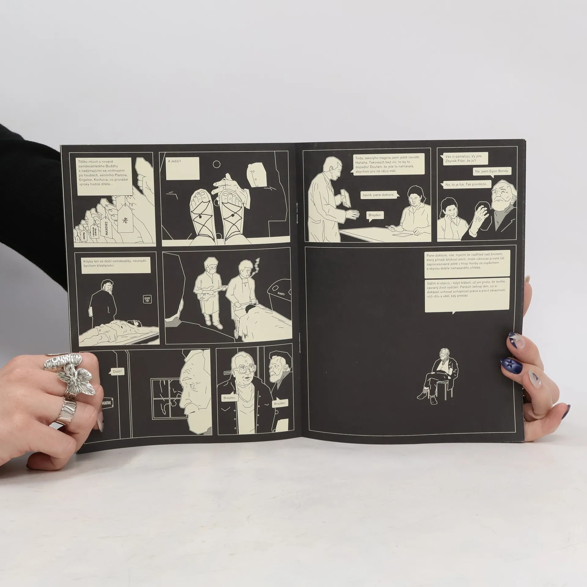 Dnešní doba snad již definitivně setřela jakékoli rozdíly mezi žánry, uměním či filozofií – neexistuje nízké, vysoké, zvrhlé či zbožné, vznešené či komiksové. A tak se s postavou Egona Bondyho můžeme setkat v komiksu ilustrátora časopisu Živel Zdeňka Trinkewitze. Bondyho Sklepní práce jsou v autorské spolupráci s Janem Kolátorem volně adaptovány v humornou filozofickou skeč. „Komiks o Bondym? – No to tu ještě nebylo,“ divil se básník a filozof osobně, když mu dílo předložil autor předmluvy S. M. Blumfeld. Ten ve svém úvodu mj. říká: „Pro superhrdinu je charakteristické tajemství dvojí identity; identitu skutečnou takticky zastírá identita předstíraná – kostým. (Superman s ,S‘ na hrudi má občanské jméno Kal–El, Batman je v civilu Brucem Waynem, a jak je známo, Egon Bondy je pseudonymem doktora Zbyňka Fišera, CSc.)“