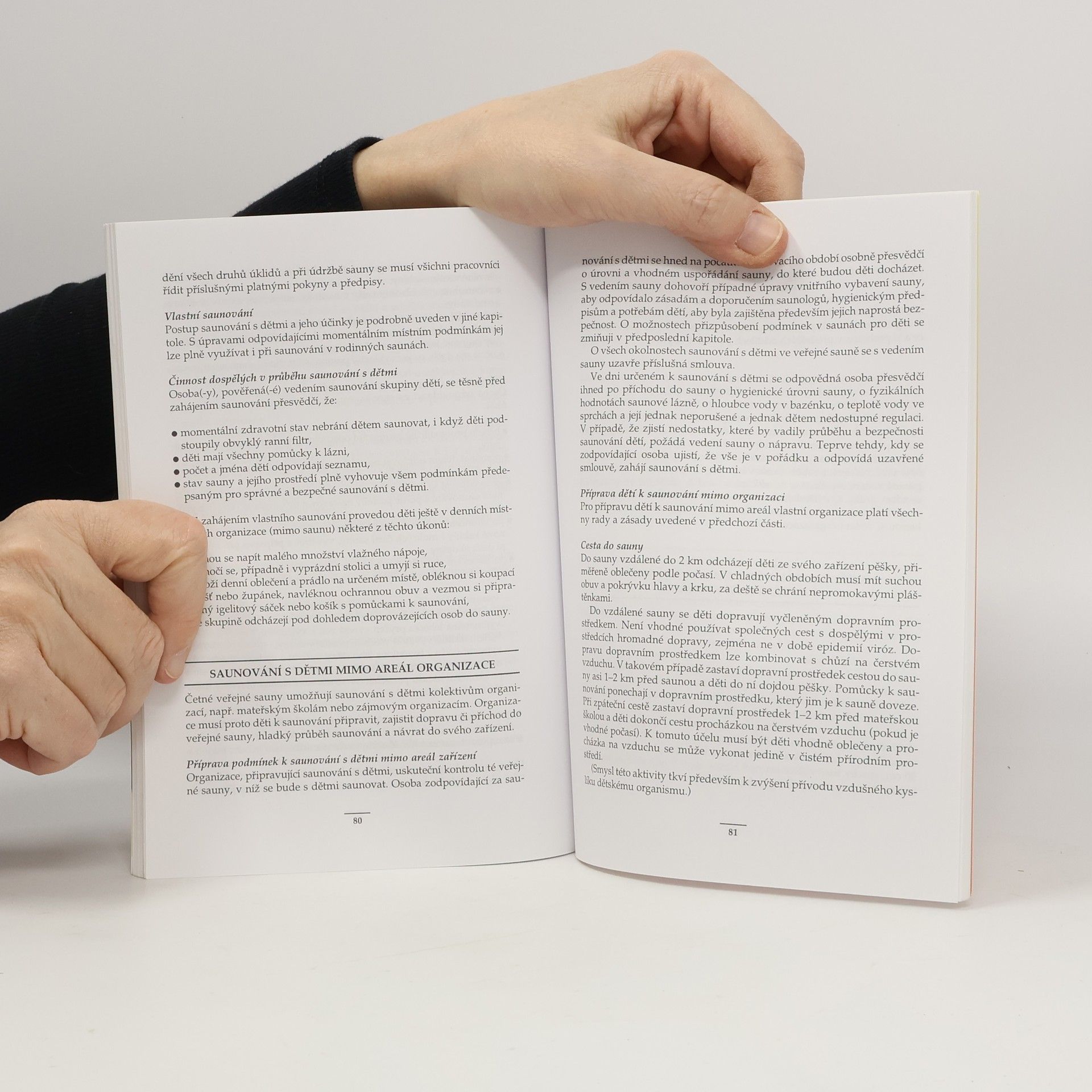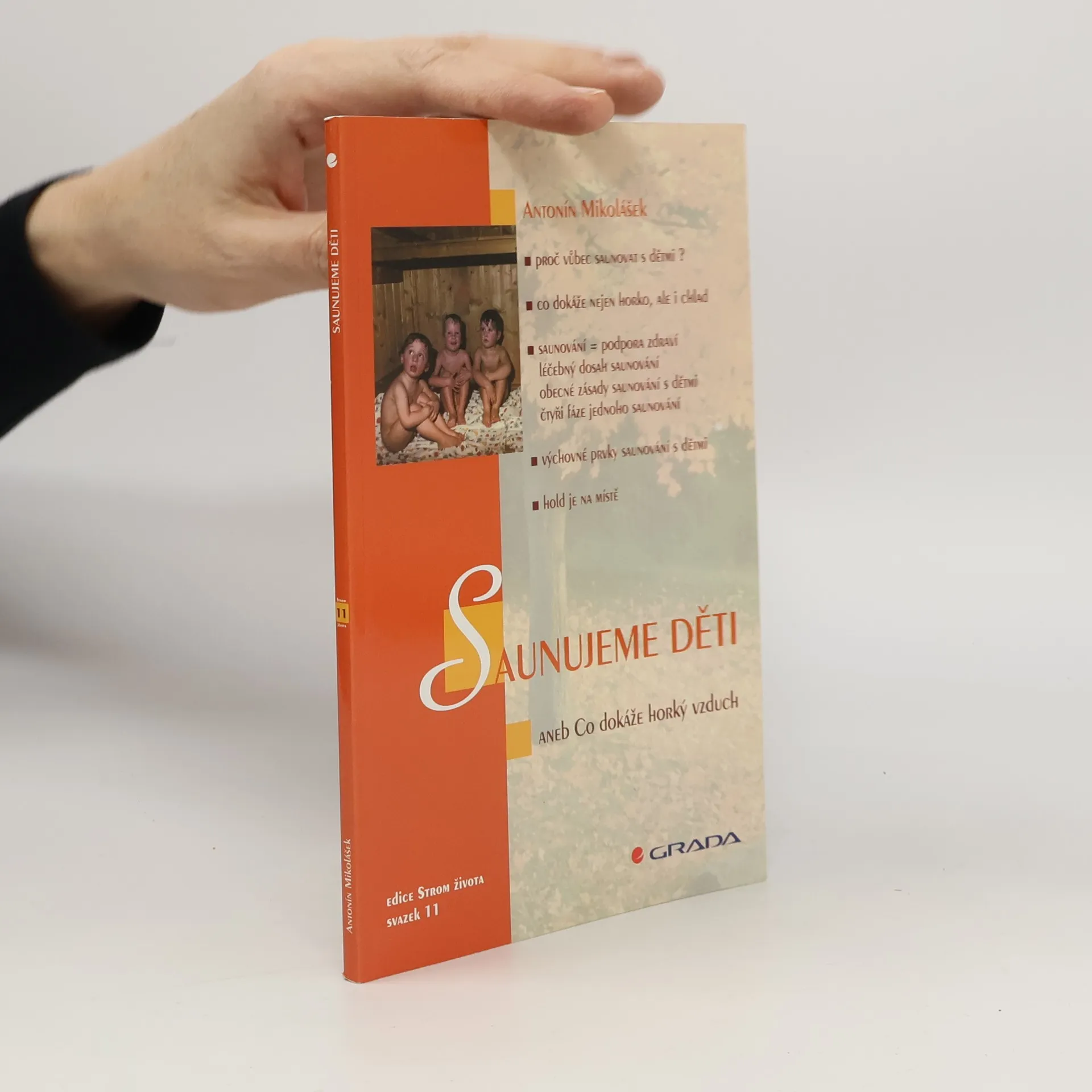 Autor - lékař a propagátor saunování v Čechách - shrnuje ve své knize nejnovější poznatky o saunování dětí a o jeho využívání ke zvyšování tělesné odolnosti dětí. První část knihy vysvětluje podstatu účinku saunové lázně a jejího léčebného a preventivního působení na dětský organismus,druhá část shrnuje obecné zásady saunování s dětmi,krok za krokem popisuje jednotlivé fáze saunování,radí,jak saunovat děti ve školkách a školách,jak sauny pro děti vybavovat a jak využívat saunování i pro výchovu dětí a vytváření jejich hygienických návyků.Zvláštní kapitoly jsou věnovány dětem nemocným,zvláště alergikům a astmatikům.