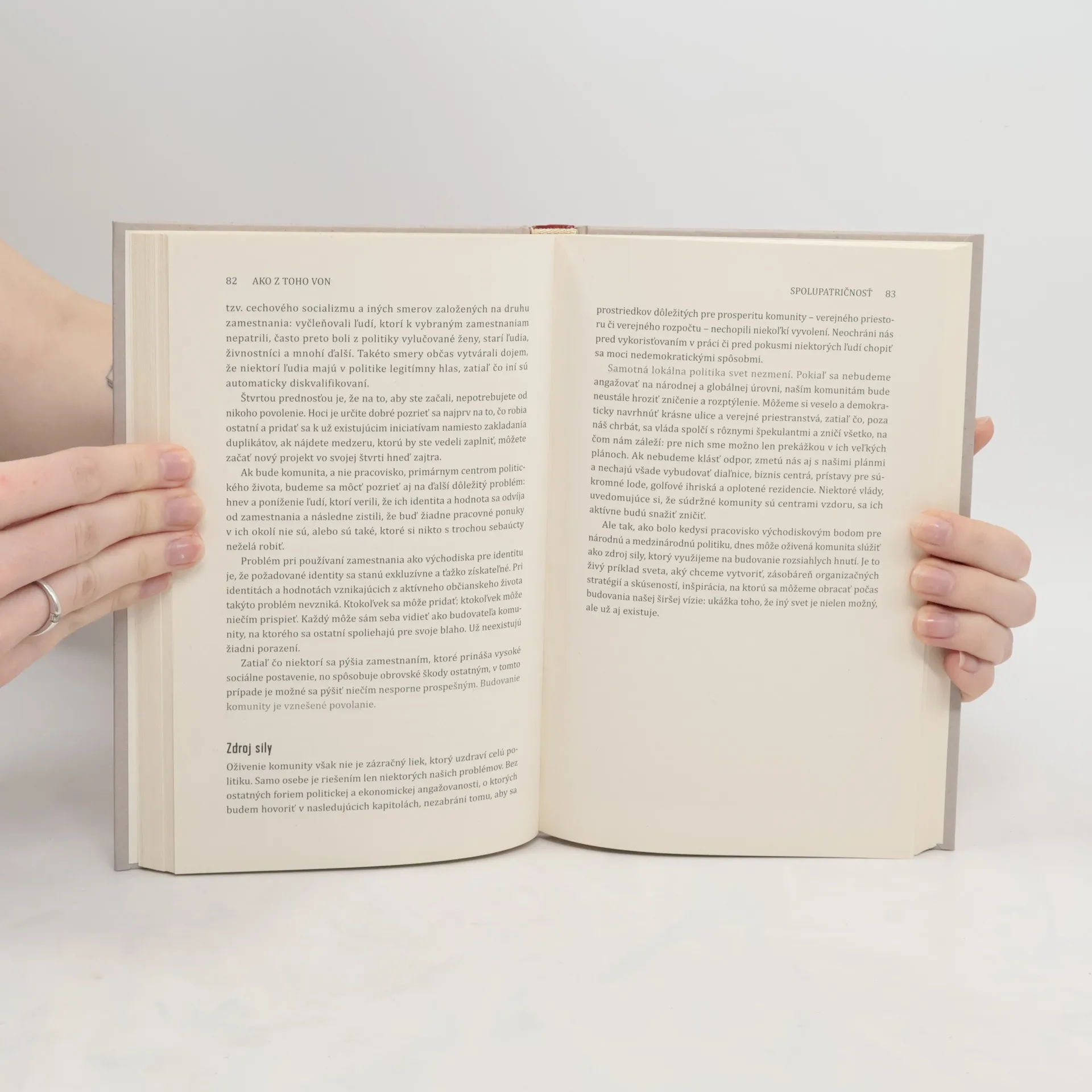 Svet ovláda toxická ideológia extrémnej rivality a individualizmu. Zahmlieva skutočnú ľudskú povahu a ničí nádej a spoločný cieľ. Nahradiť ju môže len pozitívna vízia – nový príbeh, ktorý znovu zaangažuje ľudí do politiky a osvetlí cestu k lepšiemu svetu. Britský politický a environmentálny aktivista George Monbiot popisuje, ako nové poznatky v psychológii, neurovede a evolučnej biológii umožňujú vidieť ľudí a ich povahu v úplne inom svetle: ako výnimočných altruistov, ktorí navzájom spolupracujú. Ukazuje, ako na týchto zisteniach môžeme stavať a vytvoriť novú politiku: politiku spolupatričnosti. Zásadné preorganizovanie demokracie a ekonomiky zdola nám podľa neho umožní opäť získať kontrolu a zvrhnúť sily, ktoré maria naše snahy o lepšiu spoločnosť. Naliehavá a zanietená kniha prináša nádej a jasnosť potrebné pre zmenu sveta.