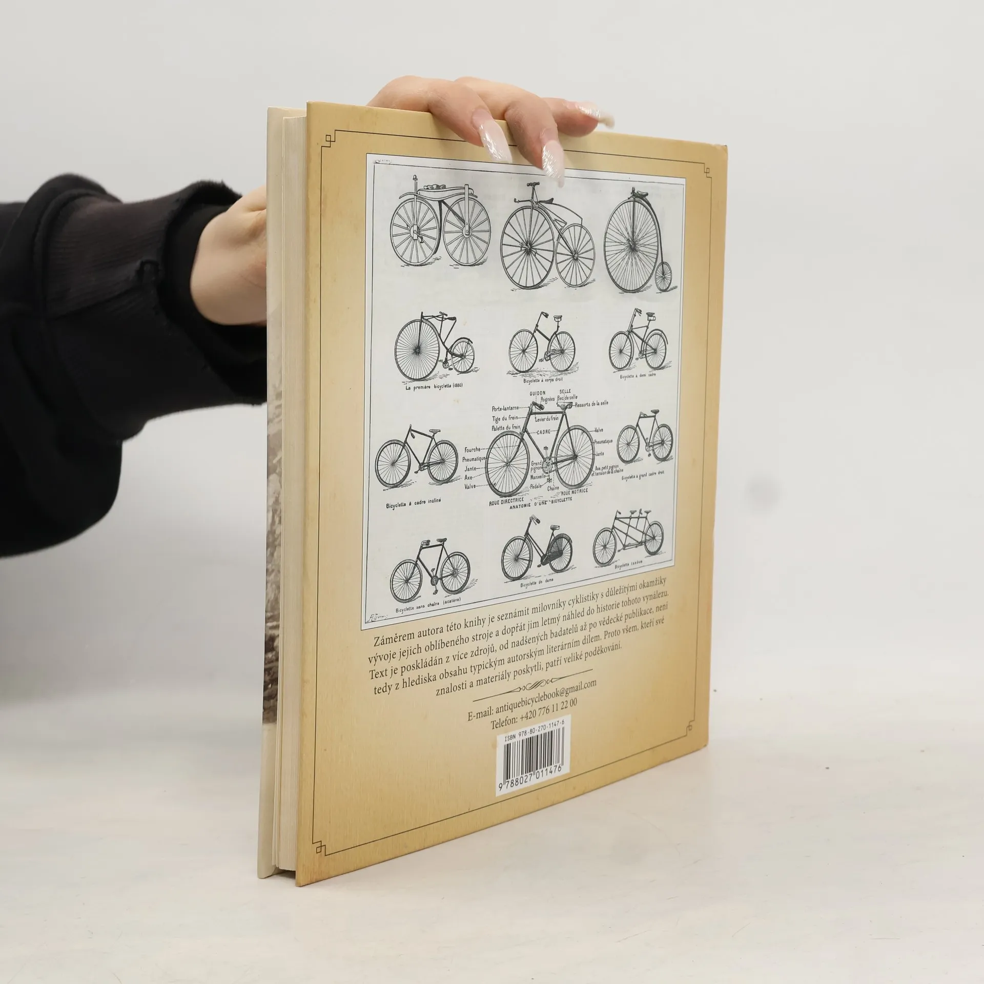 Obrazová kniha, první svého druhu v českém prostředí, seznamuje na 144 stranách milovníky cyklistiky s důležitými okamžiky vývoje jejich oblíbeného stroje a dopřává náhled do historie tohoto vynálezu. Nabízí nejen historii ve světě ale i vývoj cyklistiky u nás, průvodce výrobců a značek v Čechách, zajímavosti z dobového tisku, atmosféru prvních závodů, lehký humor a mnohé další. Vše bohatě barevně ilustrováno jedinečnými dobovými grafikami, fotografiemi, pohlednicemi, obrázky a textovými materiály. V druhé části knihy je obrazová galerie unikátní sbírky téměř 20 nejvýznamnějších jízdních kol historie i českého cyklistického prostředí od roku 1817, začínající dřevěnou Draisinou, dále např. kolo Kohout, L&K Slavia, celoodpružená Praga a další. Kniha nabízí čtenáři první ucelené seznámení se s úžasnou historií bicyklu a mohla by se stát vítaným společníkem pro milovníky sportu i historie bez rozdílu věku.