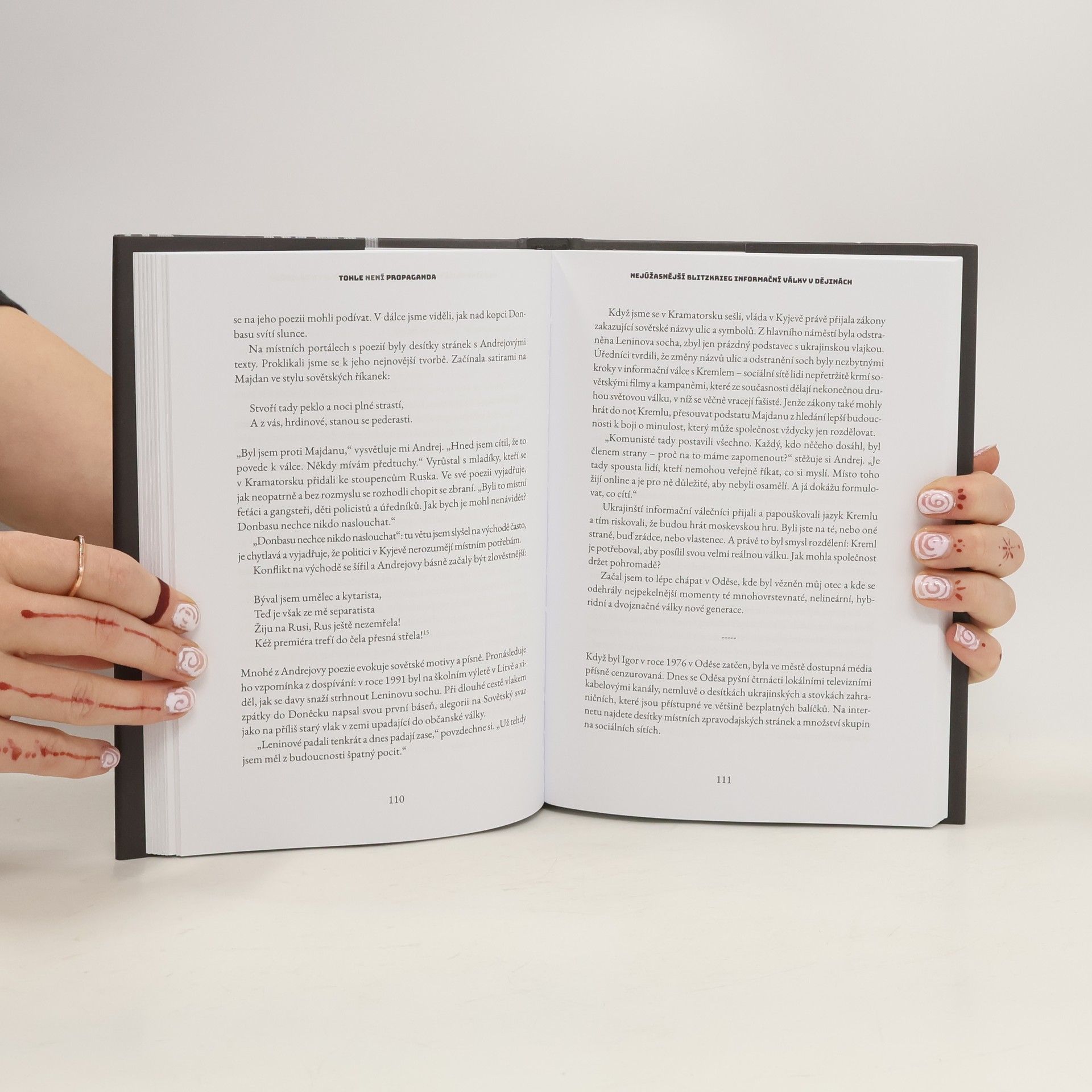 Žijeme ve zrychlené době plné nejrůznějších vlivů. Cílené reklamy, hackeři, internetoví boti, ISIS, Putin, trollové, Trump - ti všichni se snaží otřást naším vnímáním reality. V této surreálné atmosféře, jejímž cílem je nás dezorientovat a podkopat náš smysl pro pravdu, jsme ztratili nejen víru v mír a demokracii, ale i představu o tom, co tato slova znamenají. Peter Pomerantsev nás zavede do předních linií dezinformační války, kde se setkáváme s twitterovými revolucionáři, populisty, identitáři, džihádisty, hlídači pravdy a mnoha dalšími. Čtyřicet let poté, co byli jeho rodiče jakožto disidenti pronásledováni KGB, Pomerantsev dokládá, že se Moskva opět stala propagandistickou velmocí. Jeho výzkum ho proto zavedl zpět do Ruska - ale odpovědi, kterých se dopídil, nebyly takové, jaké očekával. Kniha Tohle není propaganda je zčásti reportáž, zčásti intelektuální dobrodružství- zkoumá, jaká je role politiky i nás samých v době, kdy je pravda často obracena vzhůru nohama.
