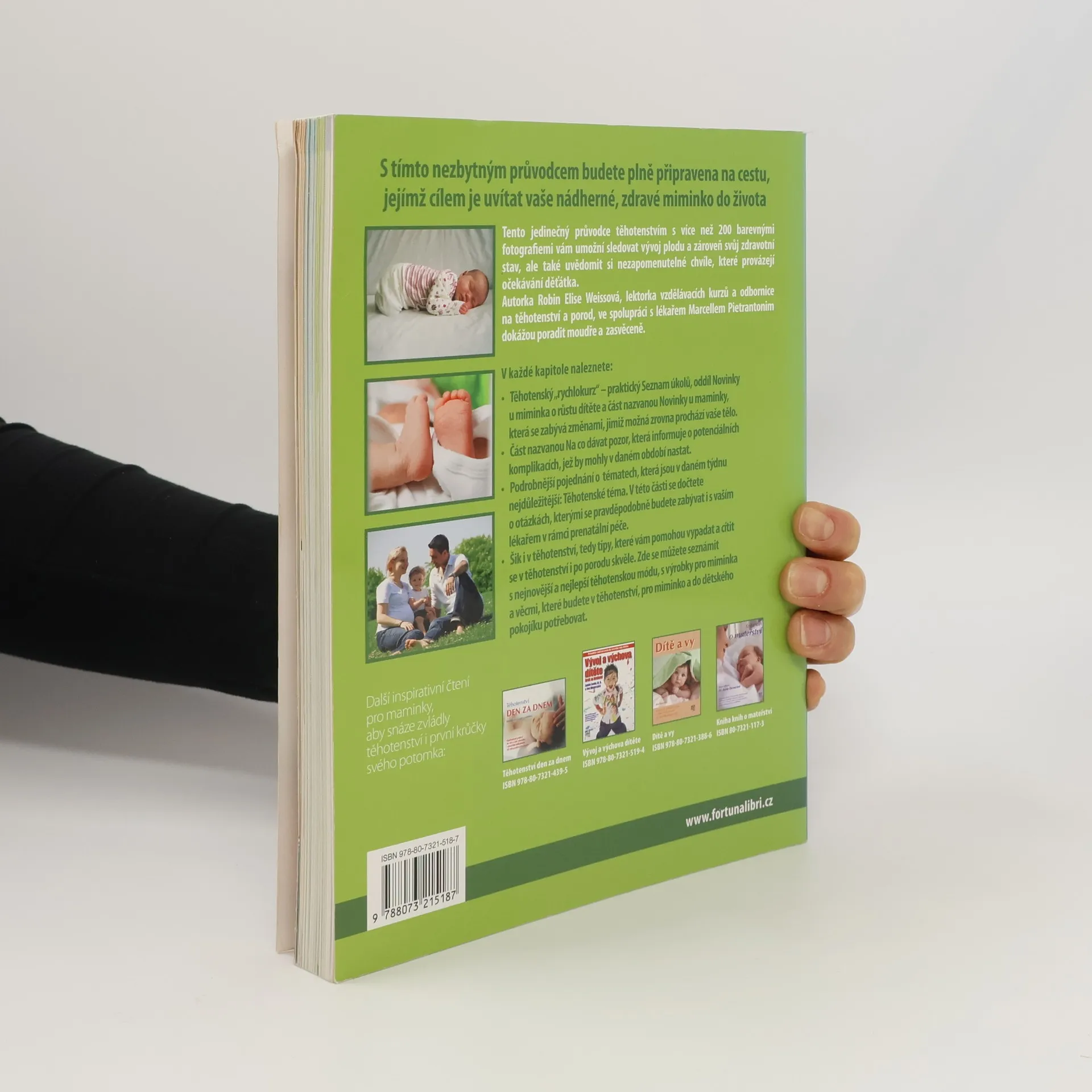 Na rozdíl od ostatních knih plných rad pro těhotné ženy vám tento jedinečný ilustrovaný průvodce s více než 200 barevnými fotografiemi umožní sledovat vývoj vašeho miminka týden po týdnu a zároveň si hlídat své zdraví. Autorka dobře ví, že žádné těhotenství ani porod nejsou stejné, a tak vám umožňuje zvážit různé možnosti, než se rozhodnete, co je nejlepší právě pro vás. S tímto nezbytným průvodcem budete plně připravena na devítiměsíční cestu, jejímž cílem je uvítat vaše nádherné, zdravé miminko do života.