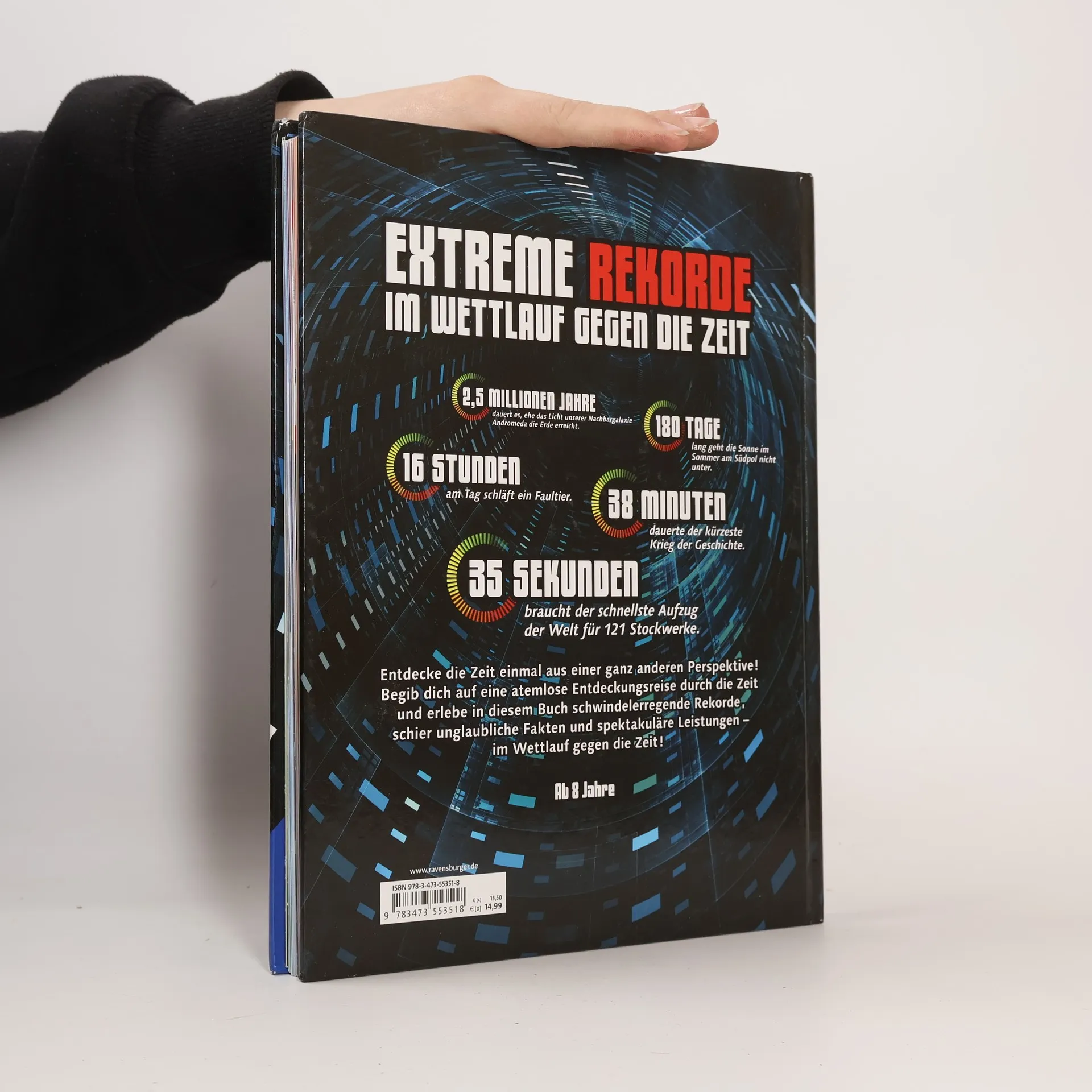 Wie schnell ist der schnellste Aufzug? Wie lange schläft ein Faultier? Die Welt steckt voller spannender Rekorde, die es zu entdecken gilt. Höher, schneller, weiter - hier erfahren Kinder die aufregendsten Rekorde aus den unterschiedlichsten Gebieten: Sport, Tiere, Astronomie, Geschichte ... Übrigens: Der schnellste Aufzug der Welt braucht 35 Sekunden für 121 Stockwerke und ein Faultier schläft 16 Stunden täglich. Beneidenswert?