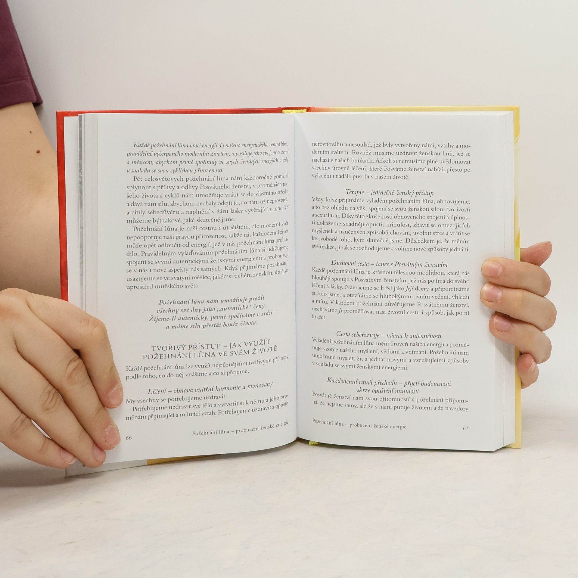 Pětkrát ročně tisíce žen po celém světě navazují mezi sebou spojení. Navazují spojení, aby se vydaly na cestu ženského léčení a návratu ke svému dávno zapomenutému autentickému ženství prostřednictvím celosvětového požehnání lůna – probuzení ženské energie. Proč je energetické centrum lůna zásadní pro spokojenou existenci a štěstí všech žen, bez ohledu na věk či fyzickou kondici. Jaký význam má Posvátné ženství pro moderní ženy a jak obnovené spojení s tímto principem pomůže zbavit váš život stresu. Jak plně přijmout své ženství v mužsky orientovaném světě, který neustále odvádí ženy od toho, co to znamená být doopravdy ženou. Součástí knížky je osmadvacetidenní „cesta vědomého žití“, jež slouží jako základní průvodce po vaší pravé přirozenosti a dále pomáhá s léčením a probuzením, k němuž dochází prostřednictvím požehnání lůna. Kniha je plná objevných momentů, meditací a cvičení určených všem ženám – bez ohledu na to, zda mají nebo nemají lůno či cyklus.