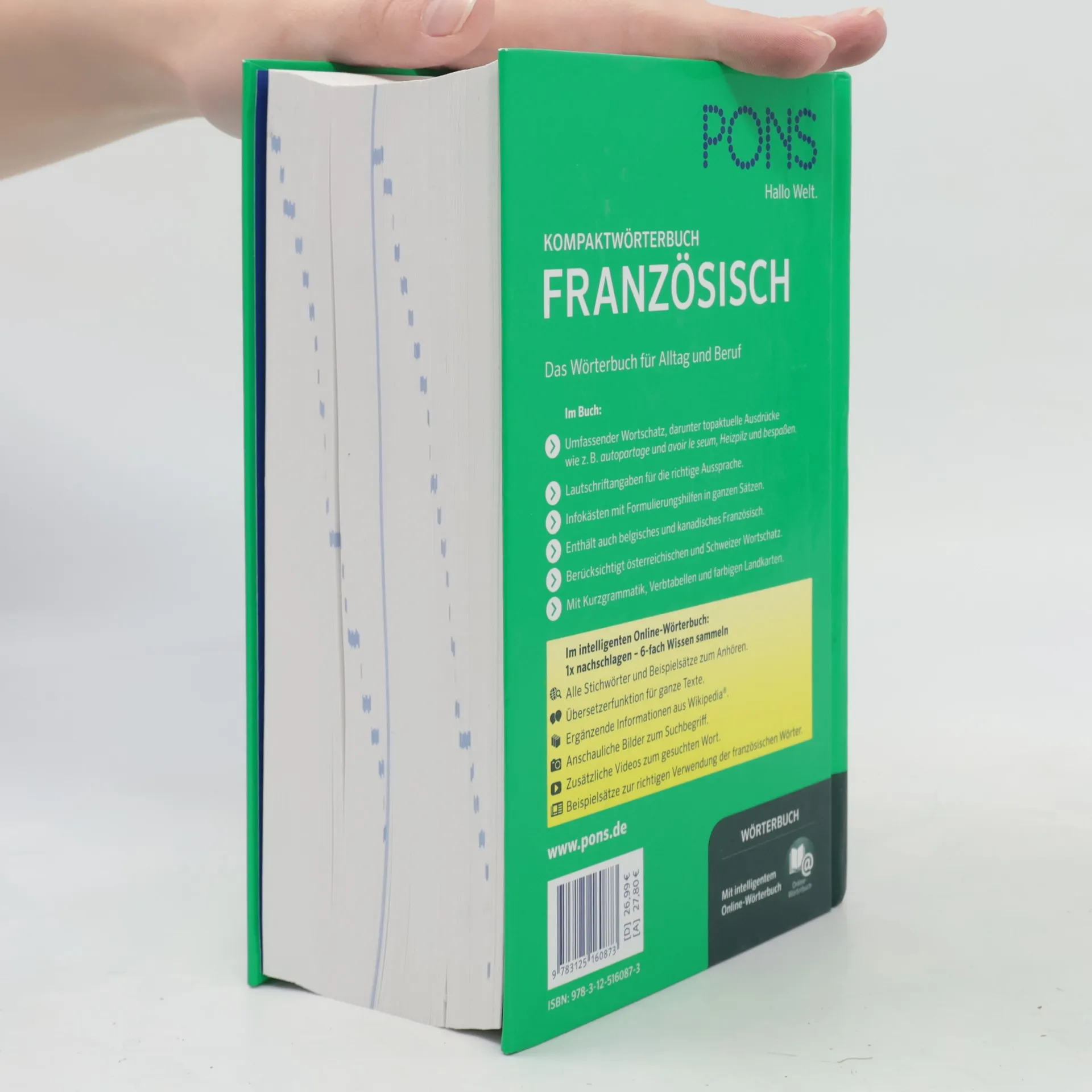 Das Wörterbuch für Alltag und Beruf Im Buch: Umfassender Wortschatz (rund 135.000 Stichwörter und Wendungen), darunter topaktuelle Ausdrücke wie z. B. autopartage und avoir le seum , Heizpilz und bespaßen . Lautschriftangaben für die richtige Aussprache. Infokästen mit Formulierungshilfen in ganzen Sätzen. Enthält auch belgisches und kanadisches Französisch. Berücksichtigt österreichischen und Schweizer Wortschatz. Mit Kurzgrammatik, Verbtabellen und farbigen Landkarten. Im intelligenten Online-Wörterbuch: 1x nachschlagen – 6-fach Wissen sammeln Alle Stichwörter und Beispielsätze zum Anhören. Übersetzerfunktion für ganze Texte. Ergänzende Informationen aus Wikipedia®. Anschauliche Bilder zum Suchbegriff. Zusätzliche Videos zum gesuchten Wort. Beispielsätze zur richtigen Verwendung der französischen Wörter. Für alle, die ein umfassendes Nachschlagewerk in Alltag und Beruf brauchen und sich nicht zwischen einer gedruckten und digitalen Version entscheiden möchten.