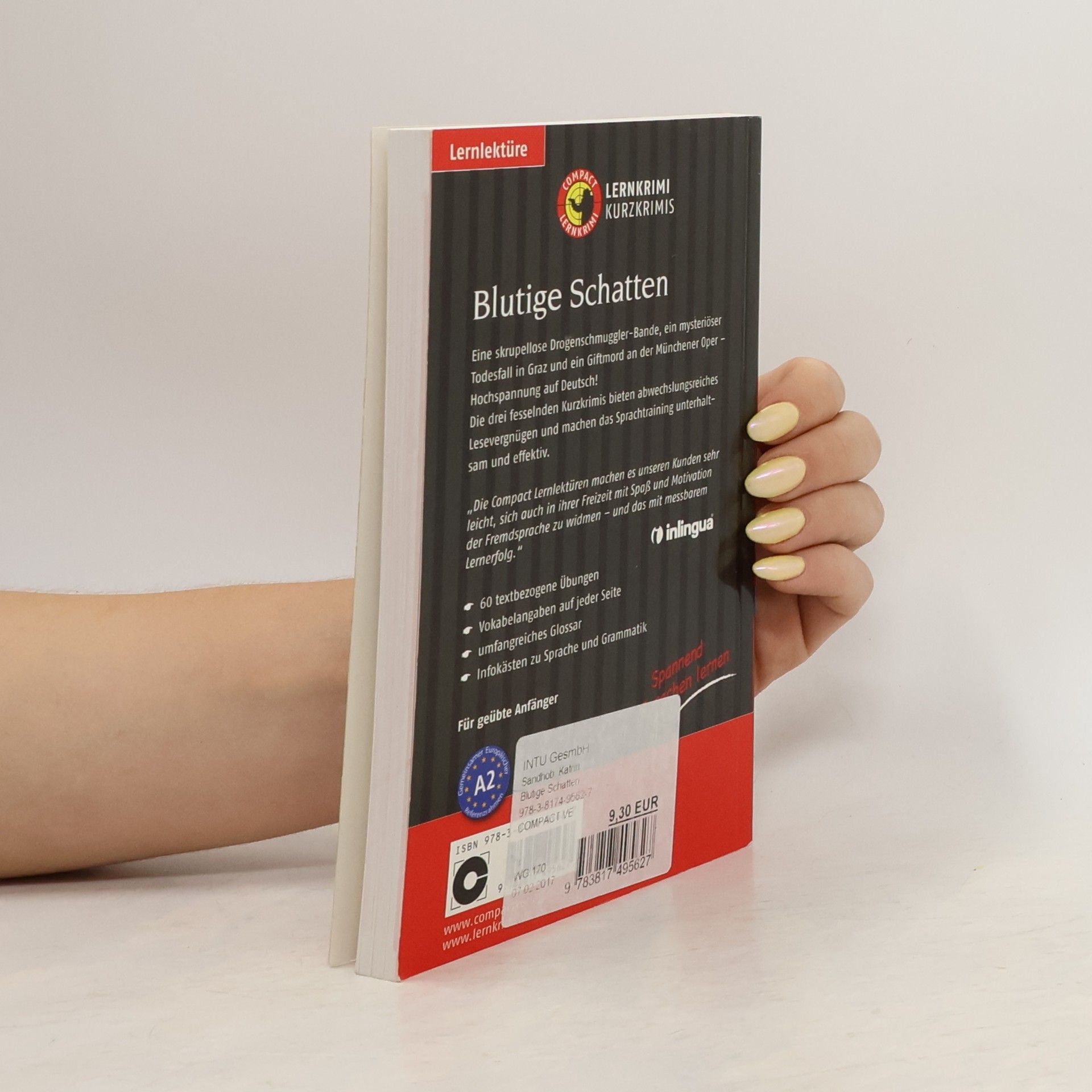 Blutige Schatten (Compact Lernkrimi) Ein mysteriöser Mord in Graz, eine schwerverletzte Regisseurin in der Münchner Oper und ein gefährliches Zerwürfnis zwischen alten Freunden. Hochspannung auf Deutsch! Diese drei Kurzkrimis eignen sich für alle, die ihre Deutschkenntnisse auffrischen, vertiefen und erweitern wollen. Der Schwerpunkt liegt gleichermaßen auf Wortschatz und Grammatik. Durch in den Text eingestreute Übungen wie Lückentexte, Zuordnungs- und Übersetzungsaufgaben, etc. wird zudem das Textverständnis geschult und der Wortschatz gefestigt. - drei spannende Kurzkrimis - gezieltes Training von Wortschatz und Grammatik - textbezogene Übungen mit Lösungen - ausführliche Vokabelangaben Deutsch-Deutsch - Infokästen zu Sprache, Grammatik und Landeskunde - besonders geeignet für den Einsatz in DaF / DaZ - Kursen - Europäischer Referenzrahmen: Für geübte Anfänger - A2