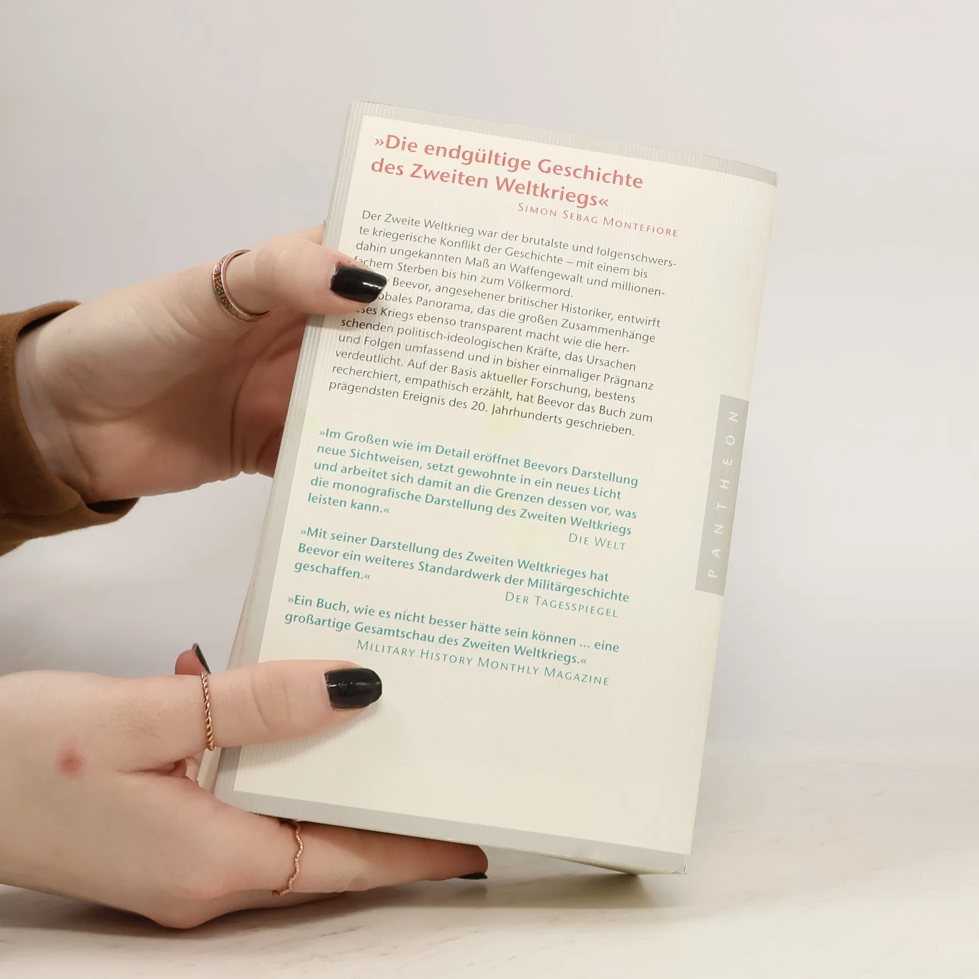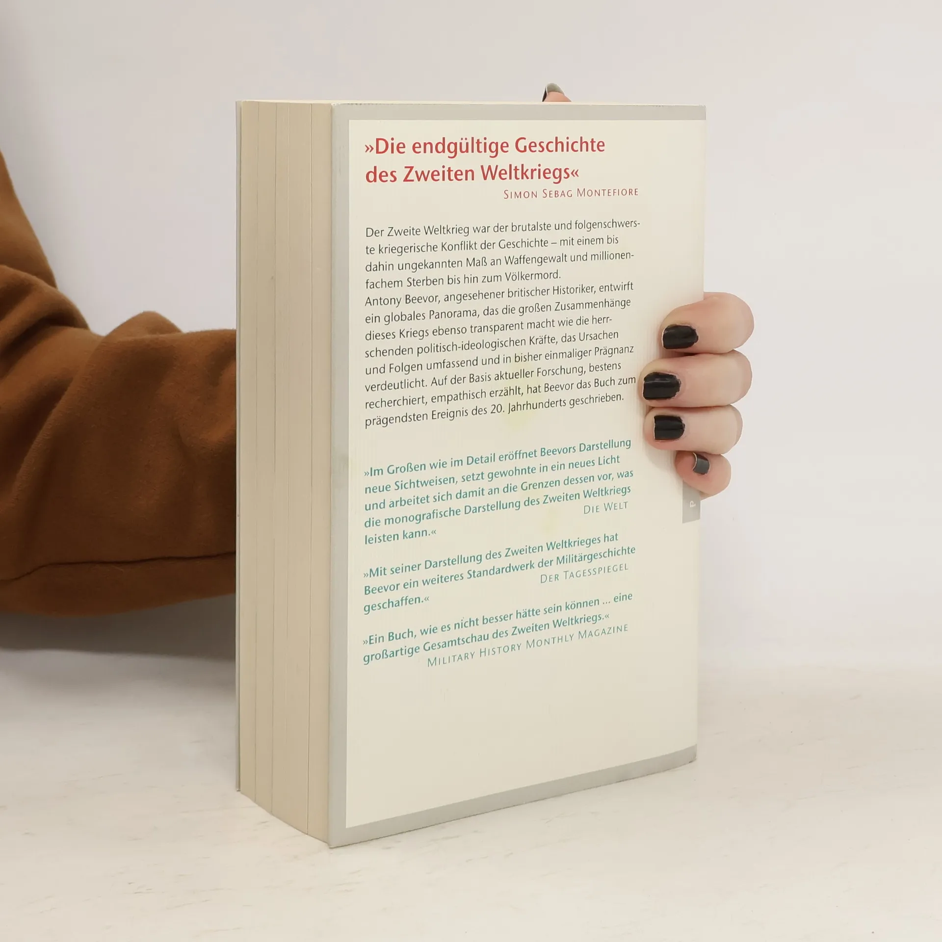 Das umfassende Standardwerk zum Zweiten Weltkrieg In seiner von der Presse gefeierten erzählerischen Gesamtschau des Zweiten Weltkriegs zeichnet Antony Beevor ein eindringliches Bild der politischmilitärischen Geschehnisse, die den opferreichsten Krieg der Menschheit bestimmten, wobei er den geläufigen Eurozentrismus perspektivisch hinter sich lässt und auch dem Schicksal einfacher Soldaten, dem Leid der Zivilbevölkerung und den Verbrechen an den Entrechteten gerecht wird. Ausstattung: mit Abbildungen