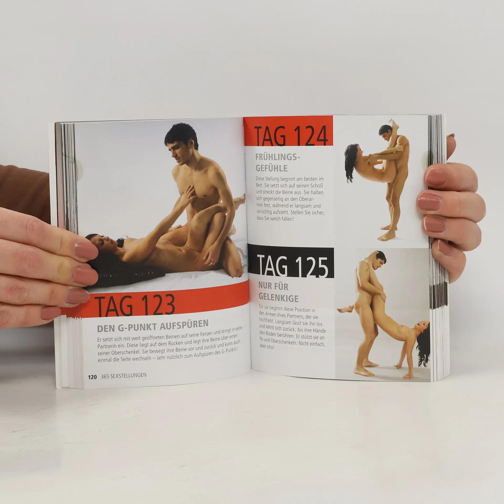 365 Tage Spaß im Bett Spaß im Bett, und das an jedem Tag des Jahres. Abenteuerlustige Paare können hier die 365 heißesten Sexstellungen erproben. Wie wärs zum Start mit dem „Schlitten“? Aber auch die „Windmühle“ und der „Ponyritt“ lassen keine Langeweile aufkommen. Und zum krönenden Höhepunkt können Sie in einer „endlosen Umarmung“ verschmelzen … Ausstattung: 365 Farbfotos