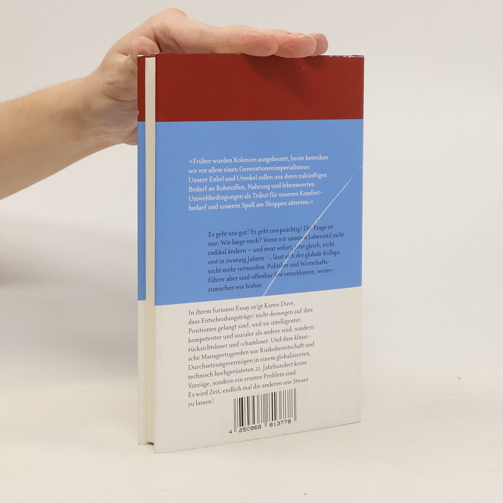 Karen Duves furioser Essay beleuchtet die drohende Selbstabschaffung der Menschheit. Wir stehen näher am globalen Kollaps, als viele denken. Kurzfristig mag weiteres Wirtschaftswachstum zu mehr Wohlstand führen, langfristig jedoch zu mehr Müll, Hunger, Naturkatastrophen und Überschwemmungen. Der entscheidende Konflikt besteht zwischen Überleben und der Beibehaltung des aktuellen Lebensstils. Bedauerlicherweise sind in Politik und Wirtschaft oft die am wenigsten geeigneten Personen an der Spitze, die Eigenschaften besitzen, die auch für Verbrecher von Vorteil wären: Durchsetzungsvermögen, Risikobereitschaft und unbegrenzte Einsatzbereitschaft. Verantwortungsvolle und sozial kompetente Menschen gelangen selten in Führungspositionen, was ein ernsthaftes Problem darstellt. Während technischer Fortschritt und Bankenwesen früher nur begrenzte destruktive Möglichkeiten boten, sind wir heute mit Herausforderungen wie Klimawandel, Artensterben, Atombomben und unregulierten Finanzmärkten konfrontiert. Duve konfrontiert ihre Leser mit Fakten, die nicht nur das Potenzial der Menschheitsgeschichte aufzeigen, sondern auch verdeutlichen, dass es höchste Zeit ist, die Perspektiven und Stimmen der verantwortungsbewussten Menschen in den Vordergrund zu rücken.