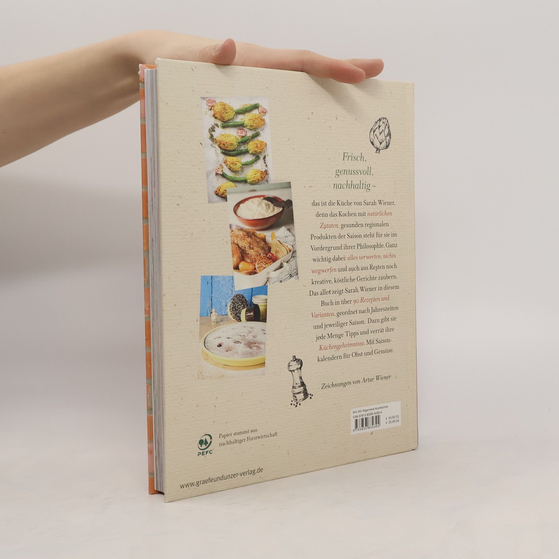 In ihrem neuen Buch zeigt die Meisterköchin in über 90 innovativen Rezepten wie man das ganze Jahr über mit saisonalen Produkten abwechslungsreich kocht. Mit vielen Tricks und Tipps, Varianten zur Resteverwertung, interessanten Infos zu besonderen, in Vergessenheit geratenen Lebensmitteln wie etwa Vogelmiere, Buchweizenbulgur oder Schlesische Himbeere. Mit anregenden Foodfotos und originellen Illustrationen ihres Sohnes Arthur Wiener.