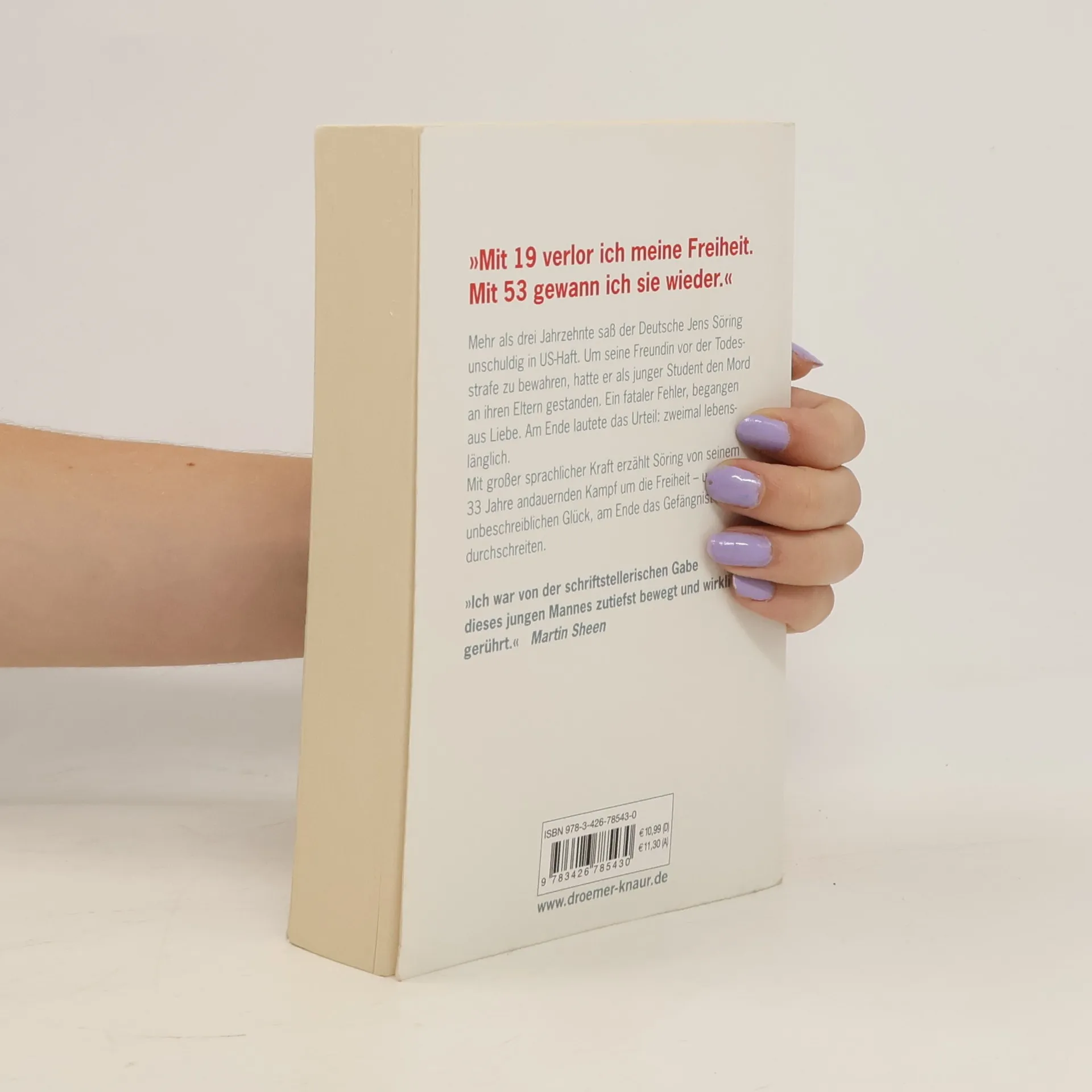 Mehr als drei Jahrzehnte saß der Deutsche Jens Söring unschuldig in US-Haft. Um seine Freundin vor der Todesstrafe zu bewahren, hatte er als junger Student den Mord an ihren Eltern gestanden. Ein fataler Fehler, begangen aus Liebe. Am Ende lautete das Urteil: zweimal lebenslänglich.Mit großer sprachlicher Kraft erzählt Söring von seinem 33 Jahre andauernden Kampf um die Freiheit – und vom unbeschreiblichen Glück, am Ende das Gefängnistor zu durchschreiten.