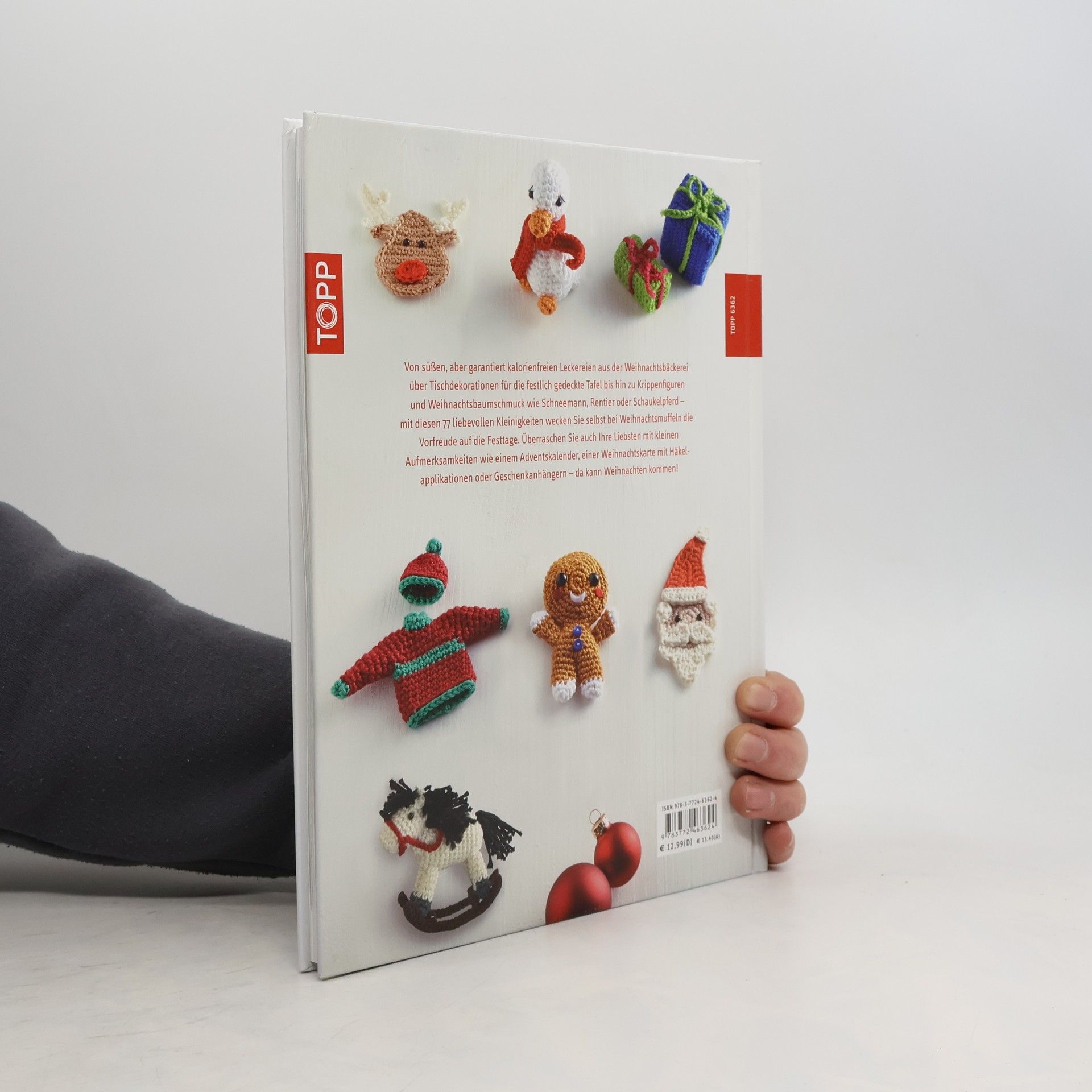 Von süßen, aber garantiert kalorienfreien Leckereien aus der Weihnachtsbäckerei über Tischdekorationen für die festlich gedeckte Tafel bis hin zu Krippenfiguren und Weihnachtsbaumschmuck wie Schneemann, Rentier oder Schaukelpferd – mit diesen 77 liebevollen Kleinigkeiten wecken Sie selbst bei Weihnachtsmuffeln die Vorfreude auf die Festtage. Überraschen Sie auch Ihre Liebsten mit kleinen Aufmerksamkeiten wie einem Adventskalender, einer Weihnachtskarte mit Häkelapplikationen oder Geschenkanhängern – da kann Weihnachten kommen!