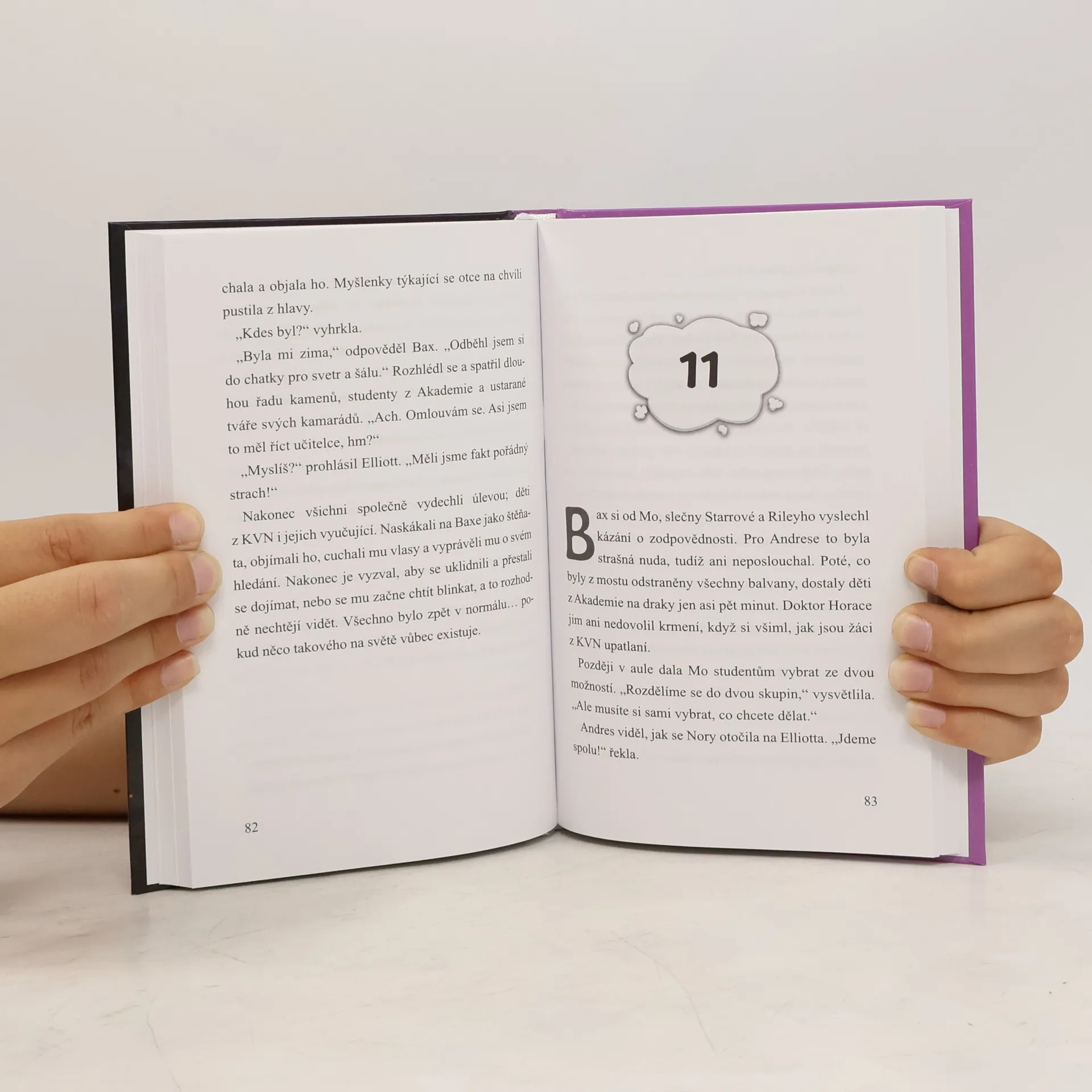 Je nejvyšší čas, aby třída Kouzel vzhůru nohama vyrazila na několikadenní školní výlet! Míří do dračího azylu, kde se ošetřovatelé starají o nejrůznější druhy draků, kteří by sami v přírodě nepřežili. Co se o nich děti zajímavého dozvědí? Největší problémy na výletě mají Andres, který se musí vypořádat s tím, že stále nekontrolovatelně létá, a samozřejmě Nory, jež zjistí, že do dračího azylu se nevydali jen žáci její Blátochmurské školy, ale i studenti Akademie mudrců. Navíc žáky Akademie doprovází ředitel školy, což není nikdo jiný než Noryin otec, s nímž má Nory nanejvýš komplikovaný vztah. Jak se budou děti z Akademie chovat k dětem s netradičními kouzelnými schopnostmi z Blátochmur? Budou se jim vysmívat, nebo se naopak skamarádí? A co Nory a otec? Najdou k sobě cestu, nebo budou raději předstírat, že k sobě ani nepatří?