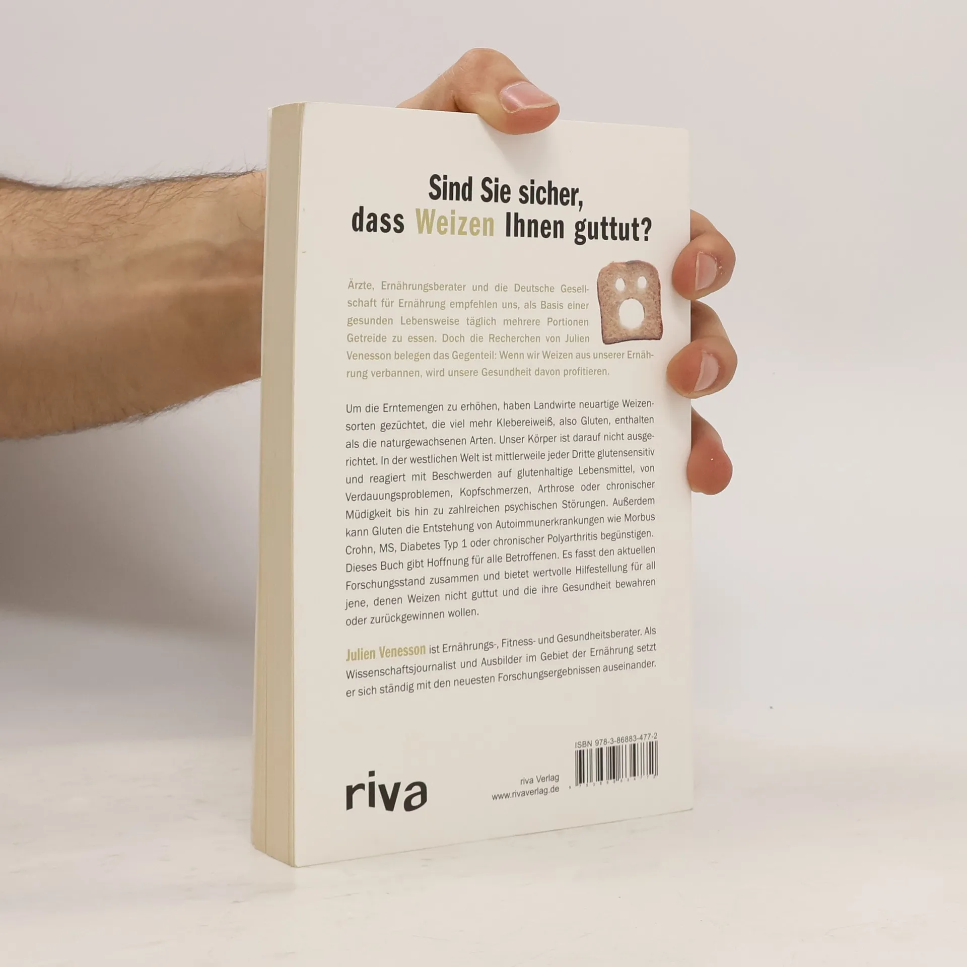In Frankreich ein Bestseller ist nun die deutsche Übersetzung von Julien Venessons "Ratgeber für Glutensensitive" auf dem Markt. Venesson, Ernährungs- und Fitnessberater und Wissenschaftsjournalist, propagiert hier die Meinung, die auch schon William Davis ("Weizenwampe") oder David Perlmutter in ihren Büchern als neue Bedrohung und Gesellschaftskrankheit diskutiert haben: Neuartige, hochgezüchtete Weizensorten enthalten mehr Gluten als der normale Mensch verkraften kann. Verdauungsprobleme, Kopfschmerzen, Müdigkeit und Arthrose bis hin zur Depression und Schizophrenie seien die Folge. Nur wer Brot und glutenhaltige Nahrungsmittel konsequent vermeide, kann sich diesen Konsequenzen entziehen, so Venesson. All das ist gut laienverständlich und lesbar, mit vielen vorrangig englischsprachigen Quellen belegt. Ein Ratgeber, wie der Untertitel suggeriert, ist das Buch jedoch nicht