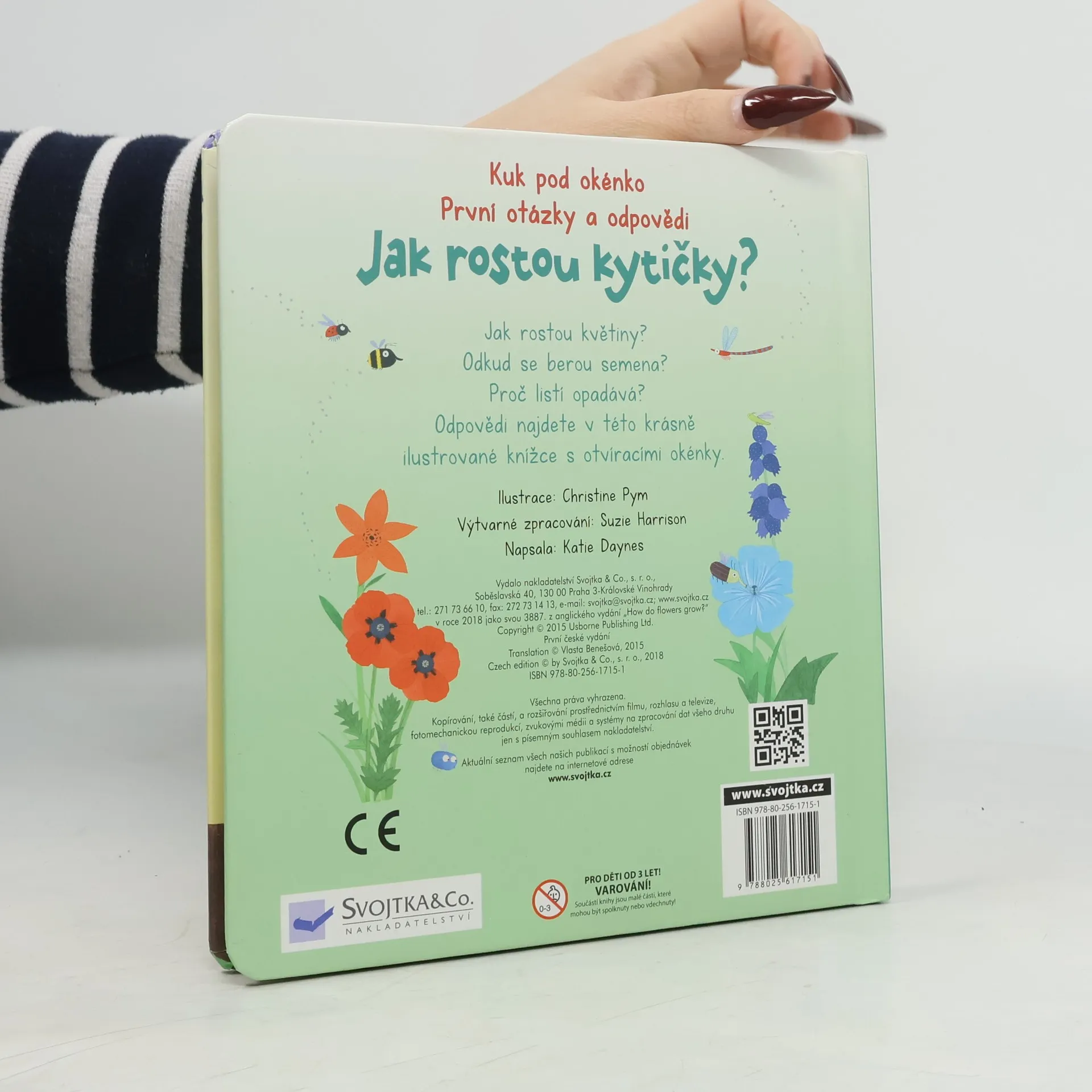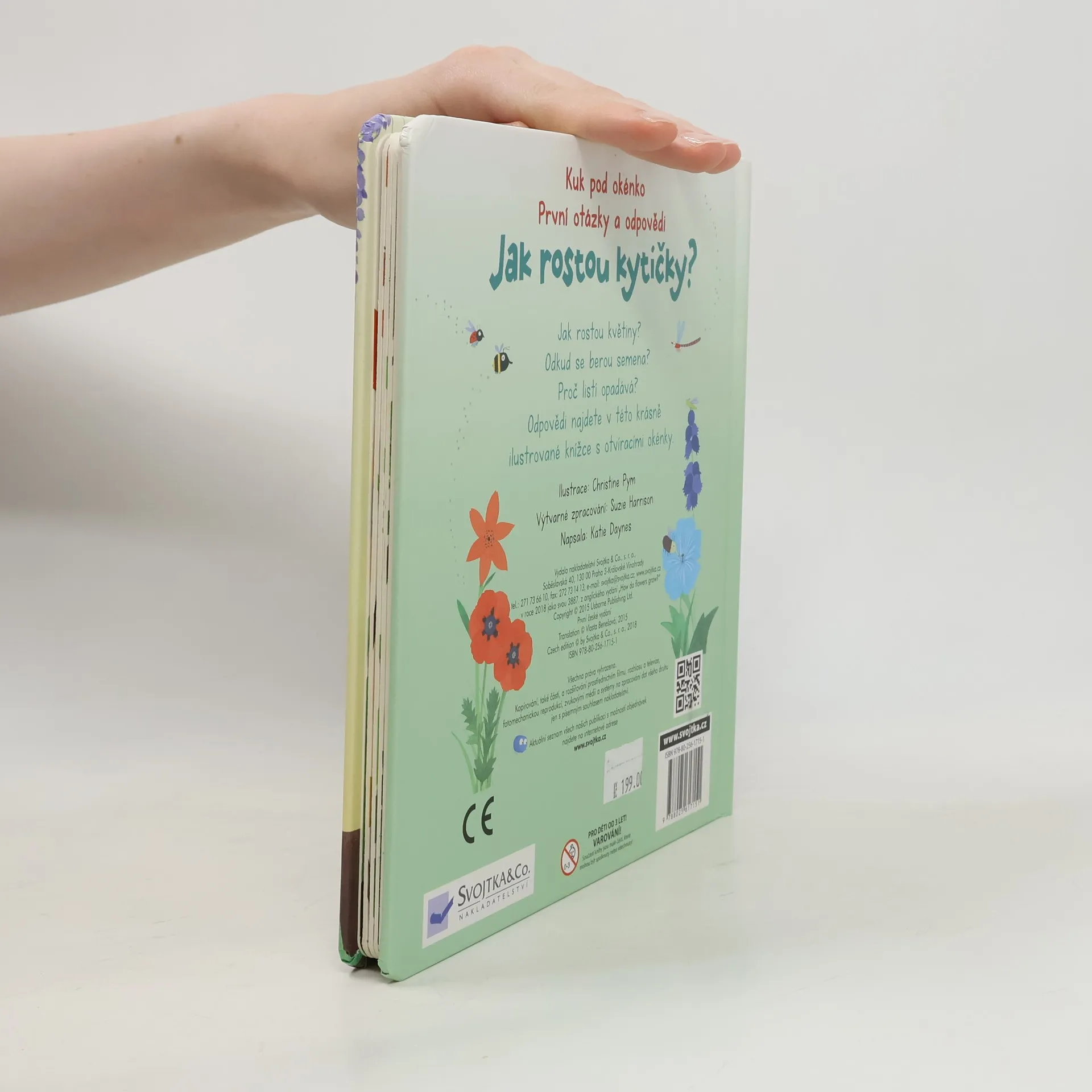 V této krásně ilustrované knížce s odklápěcími okénky najdete odpovědi na první otázky týkající se rostlin kolem nás. Potřebují rostliny nějakou potravu? Proč mají rostliny květy? Proč jsou květy barevné a hezky voní? Proč mění listy barvu a opadávají? Jaké jsou největší, nejpodivnější a nejvíce páchnoucí rostliny? Odpovědi na tyto a mnoho dalších otázek týkajících se rostlin kolem nás najdete v této krásně ilustrované knížce s odklápěcími okénky.