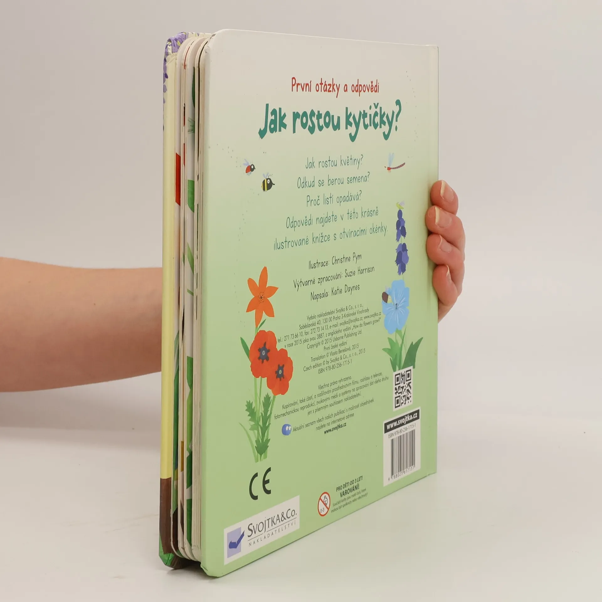 V této krásně ilustrované knížce s odklápěcími okénky najdete odpovědi na první otázky týkající se rostlin kolem nás. Potřebují rostliny nějakou potravu? Proč mají rostliny květy? Proč jsou květy barevné a hezky voní? Proč mění listy barvu a opadávají? Jaké jsou největší, nejpodivnější a nejvíce páchnoucí rostliny? Odpovědi na tyto a mnoho dalších otázek týkajících se rostlin kolem nás najdete v této krásně ilustrované knížce s odklápěcími okénky.