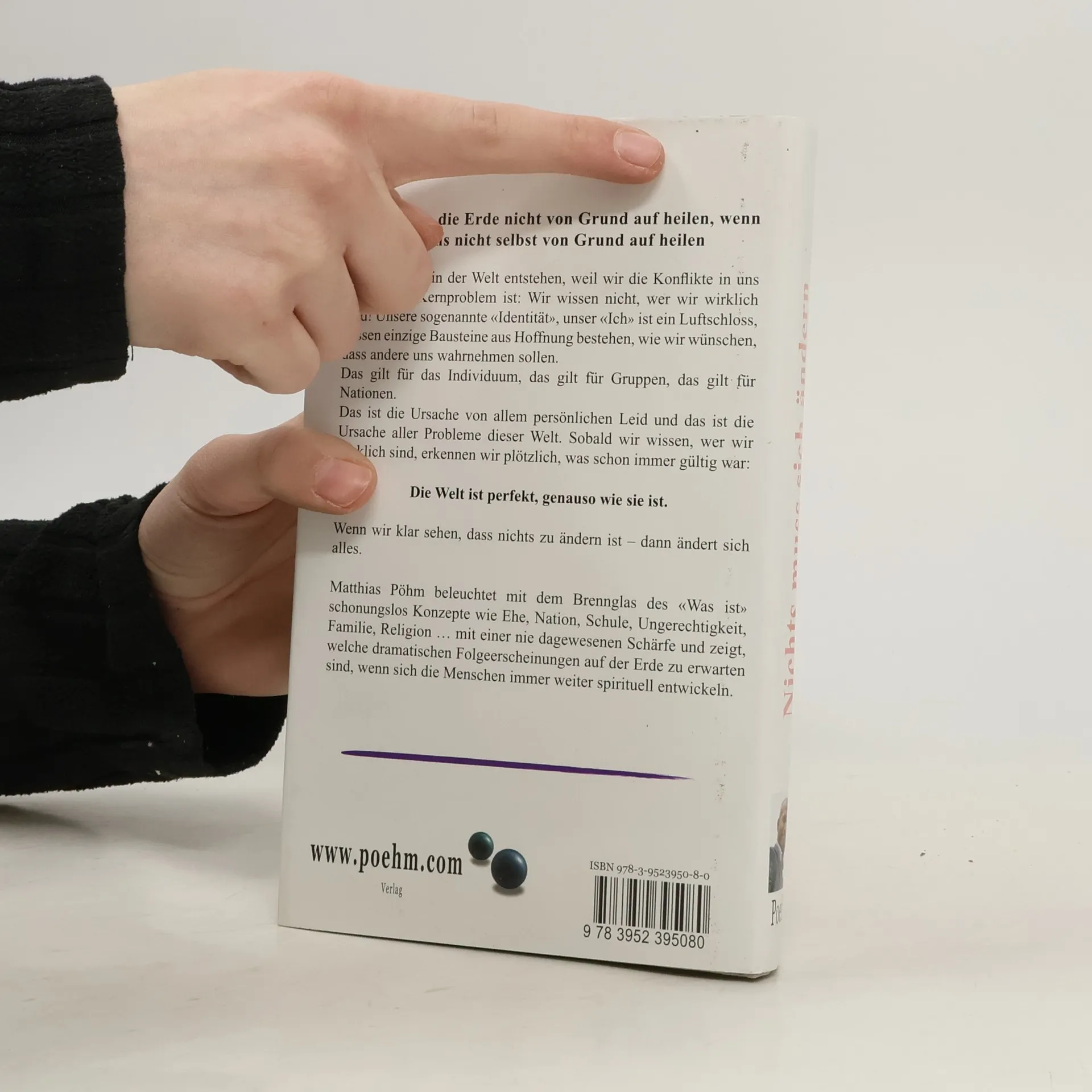 Wir können die Erde nicht von Grund auf heilen, wenn wir uns nicht selbst von Grund auf heilen Die Konflikte in der Welt entstehen, weil wir die Konfl ikte in uns haben. Das Kernproblem ist: Wir wissen nicht, wer wir wirklich sind! Unsere sogenannte 'Identität', unser 'Ich' ist ein Luftschloss, dessen einzige Bausteine aus Hoffnung bestehen, wie wir wünschen, dass andere uns wahrnehmen sollen. Das gilt für das Individuum, das gilt für Gruppen, das gilt für Nationen. Das ist die Ursache von allem persönlichen Leid und das ist die Ursache aller Probleme dieser Welt. Sobald wir wissen, wer wir wirklich sind, erkennen wir plötzlich, was schon immer gültig war: Die Welt ist perfekt, genauso wie sie ist. Wenn wir klar sehen, dass nichts zu ändern ist – dann ändert sich alles. Matthias Pöhm beleuchtet mit dem Brennglas des 'Was ist' schonungslos Konzepte wie Ehe, Nation, Schule, Ungerechtigkeit, Familie, Religion … mit einer nie dagewesenen Schärfe und zeigt, welche dramatischen Folgeerscheinungen auf der Erde zu erwarten sind, wenn sich die Menschen immer weiter spirituell entwickeln.