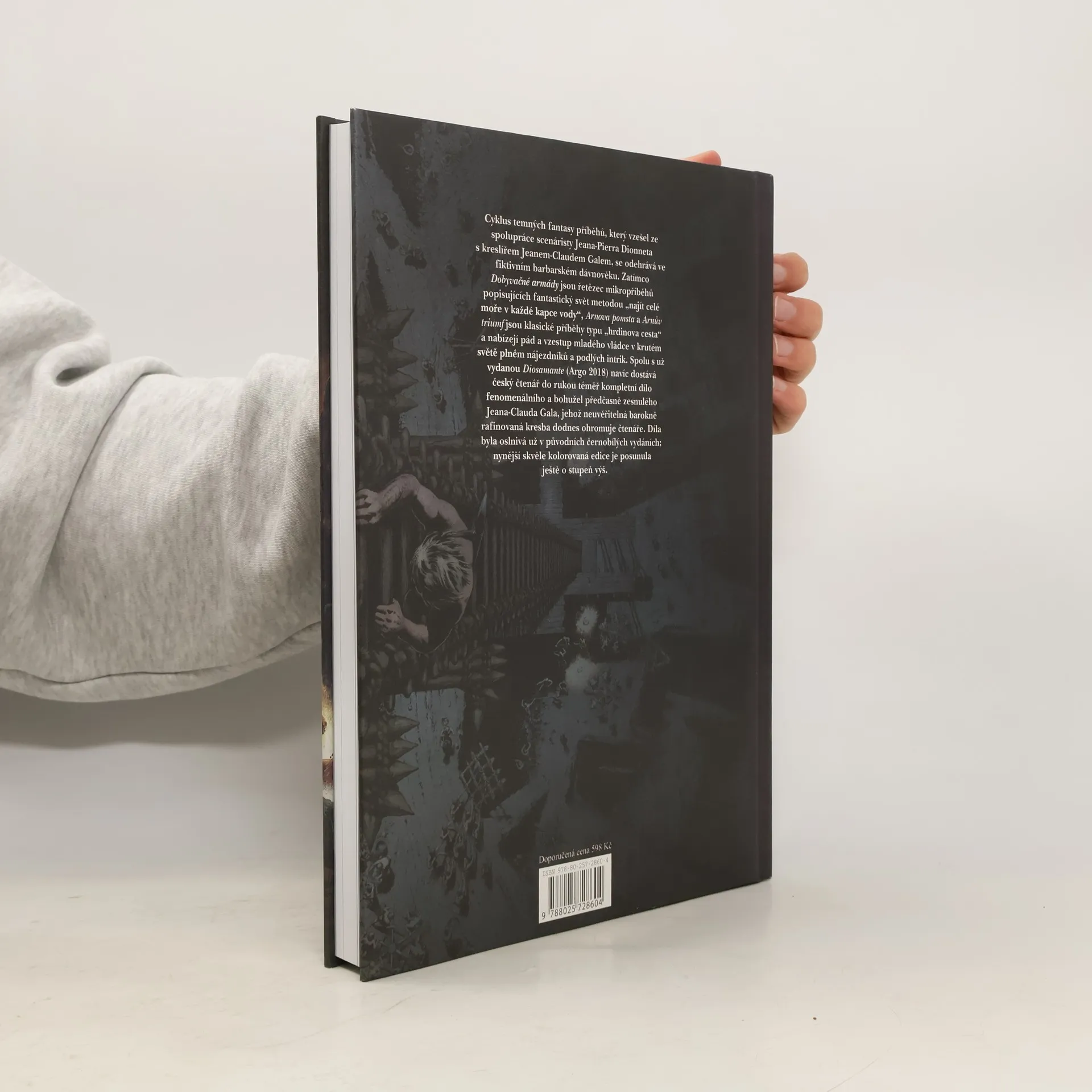 Cyklus temných fantasy příběhů, který vzešel ze spolupráce scenáristy Jeana-Pierra Dionneta s kreslířem Jeanem- -Claudem Galem, se odehrává ve fiktivním barbarském dávnověku. Zatímco Dobyvačná vojska jsou řetězec mikropříběhů popisujících fantastický svět metodou „najít celé moře v každé kapce vody“, Arnova pomsta a Arnův triumf jsou klasické příběhy typu „hrdinova cesta“ a nabízejí pád a vzestup mladého vládce v krutém světě plném nájezdníků a podlých intrik. Spolu s už vydanou Diosamante (Argo, 2018) navíc dostává český čtenář do rukou téměř kompletní dílo fenomenálního a bohužel předčasně zesnulého Jeana-Clauda Gala, jehož neuvěřitelná barokně rafinovaná kresba dodnes ohromuje čtenáře. Díla byla oslnivá už v původních černobílých vydáních; nynější skvěle kolorovaná edice je posunula ještě o stupeň výš.