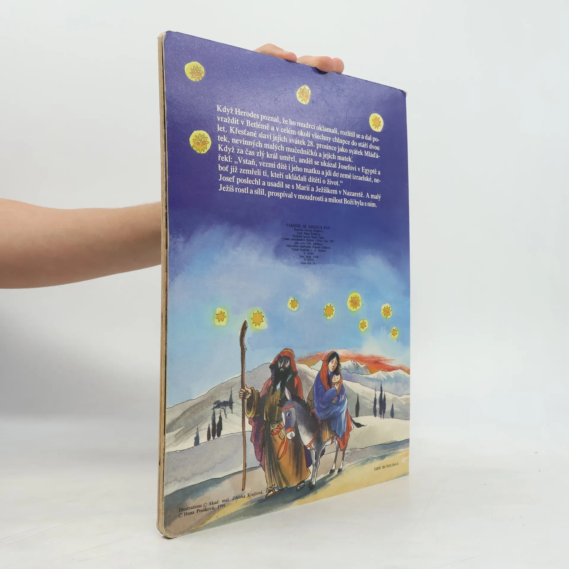 Příběh narození Krista převyprávěný krátkým textem s velkými celostránkovými obrázky je určen mladším školákům.