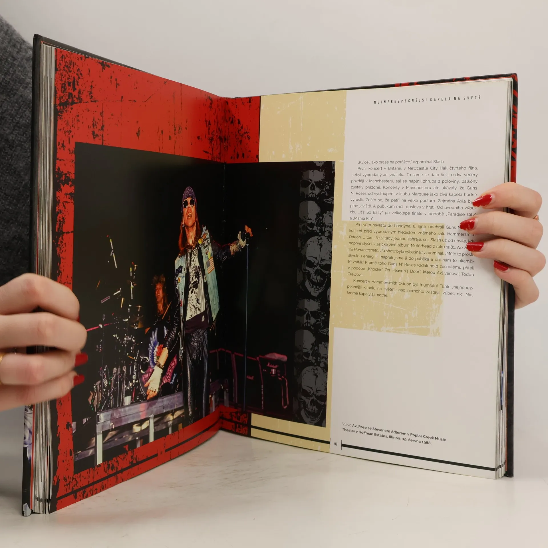 Rockový novinář Paul Elliott skupinu zpovídal už před vydáním debutového alba a od té doby ještě mnohokrát. Nyní přináší skutečně zasvěcený pohled na hudbu, úspěchy i peripetie Guns N‘ Roses během posledních více než třiceti let. V neuvěřitelném příběhu jedné z největších rockových kapel všech dob nechybí ani nejaktuálnější kapitola, opětovné shledání tří původních členů Guns N‘ Roses na jednom jevišti. Kniha obsahuje 200 strhujících barevných fotografií od fotografů, kteří dokumentovali kariéru skupiny.