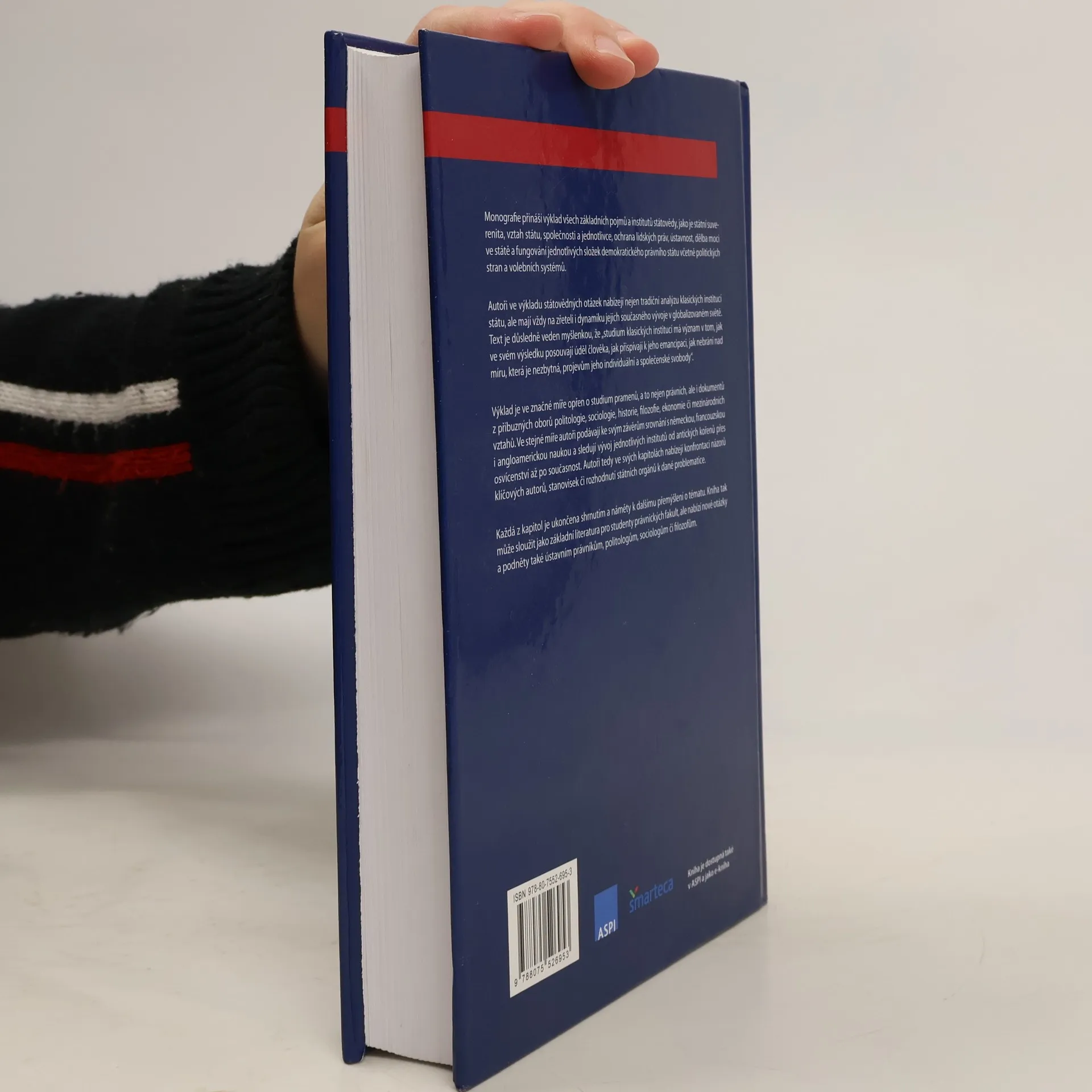 Monografie přináší výklad základních pojmů a institutů státovědy, jako jsou státní suverenita, vztah státu, společnosti a jednotlivce, ochrana lidských práv, ústavnost, dělba moci a fungování demokratického právního státu, včetně politických stran a volebních systémů. Autoři kombinují tradiční analýzu klasických institucí s dynamikou jejich vývoje v globalizovaném světě. Klíčovým tématem je, jak studium těchto institucí posouvá lidský úděl a přispívá k emancipaci a svobodě jednotlivce. Výklad je podložen studiem pramenů z různých oborů, včetně politologie, sociologie, historie, filozofie, ekonomie a mezinárodních vztahů. Autoři srovnávají své závěry s německou, francouzskou a angloamerickou naukou a sledují vývoj jednotlivých institutů od antiky po současnost. Každá kapitola končí shrnutím a podněty k dalšímu přemýšlení. Kniha slouží jako základní literatura pro studenty právnických fakult, ale také nabízí nové otázky a podněty ústavním právníkům, politologům, sociologům a filozofům.