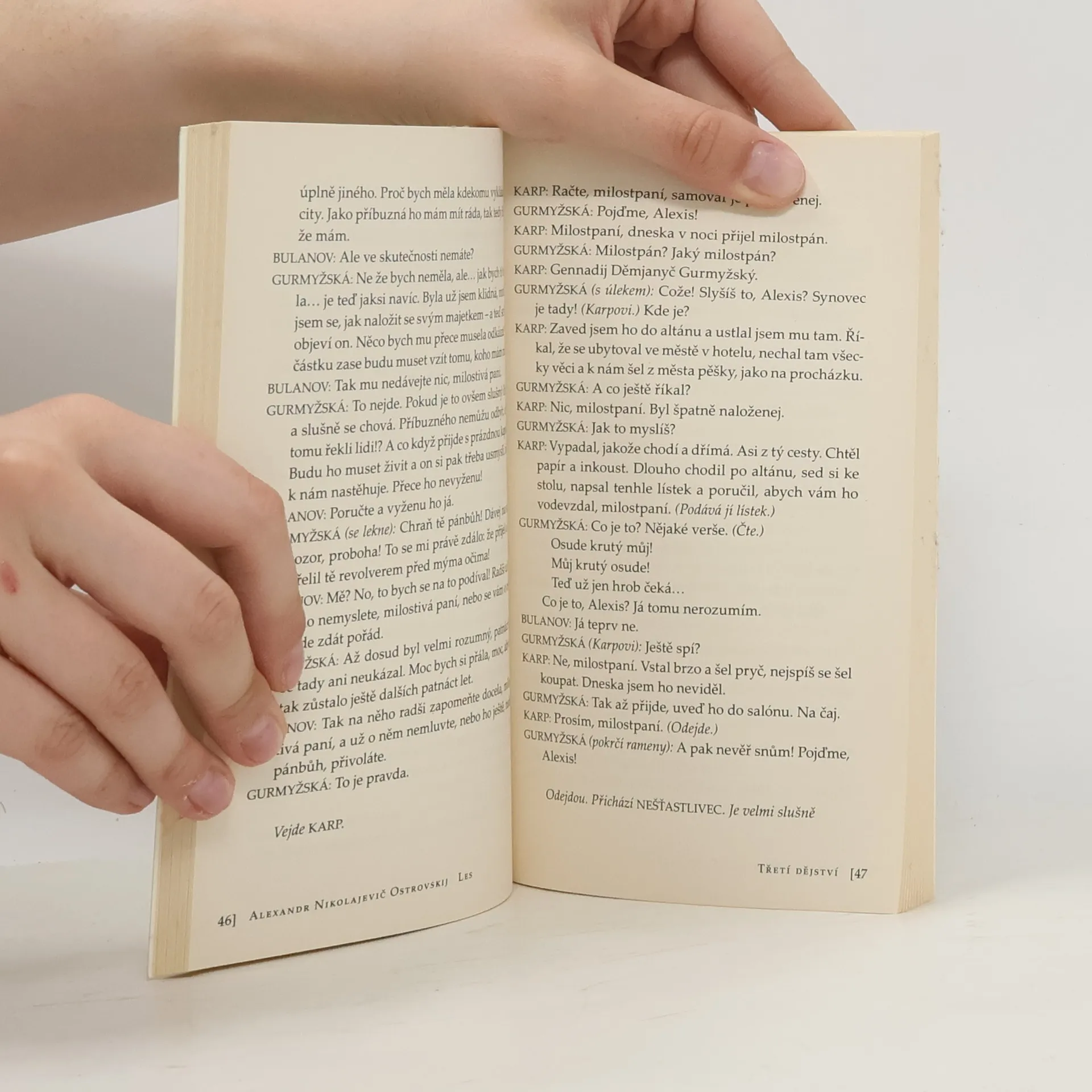 Ostrovského komedie o pěti dějstvích je jednou z jeho nejznámějších a nejuváděnějších her vůbec. Ačkoli je jejím ústředním tématem spor o les, podstatnou úlohu v ní hrají i postavy potulných herců, Šťastlivce a Nešťastlivce, jejichž ideály mohou ve světě plném intrik a vypočítavosti jen těžko obstát. Hra, v níž autor rovněž ukazuje, jak milostný cit svádí marný boj s mocí peněz, vychází v překladu Leoše Suchařípy jako 118. svazek edice D.