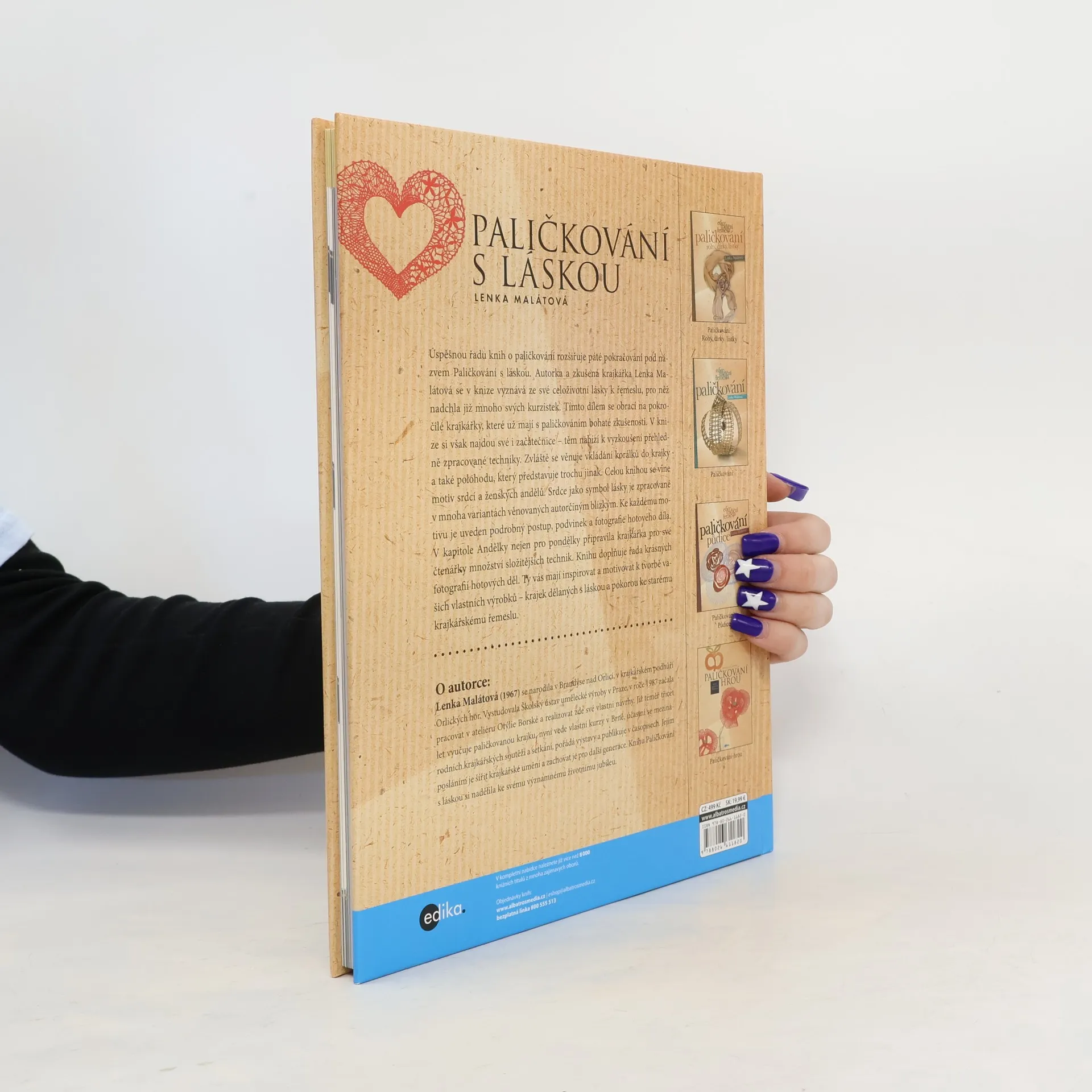 Páté pokračování úspěšné řady knih o paličkování, jehož autorkou je zkušená krajkářka Lenka Malátová, se zaměřuje na pokročilé krajkářky, ale nabídne i začátečnicím přehledně zpracované techniky. Malátová se v knize vyznává ze své celoživotní lásky k řemeslu, které nadchlo mnohé její kurzistky. Zvláštní pozornost věnuje vkládání korálků do krajky a polohodu, přičemž celou knihou se vine motiv srdcí a ženských andělů. Srdce jako symbol lásky je zpracováno v různých variantách, které jsou věnovány autorčiným blízkým. Každý motiv je doplněn podrobným postupem, podvinkem a fotografií hotového díla. V kapitole Andělky nejen pro pondělky autorka představuje množství složitějších technik. Kniha je obohacena o krásné fotografie hotových děl, které mají inspirovat čtenáře k vlastnímu tvoření. Lenka Malátová, narozená v Brandýse nad Orlicí, se věnuje paličkované krajce téměř třicet let, vyučuje, účastní se mezinárodních soutěží a pořádá výstavy. Jejím posláním je šířit krajkářské umění a zachovat je pro další generace. Tato kniha je osobním darem k jejímu významnému životnímu jubileu.