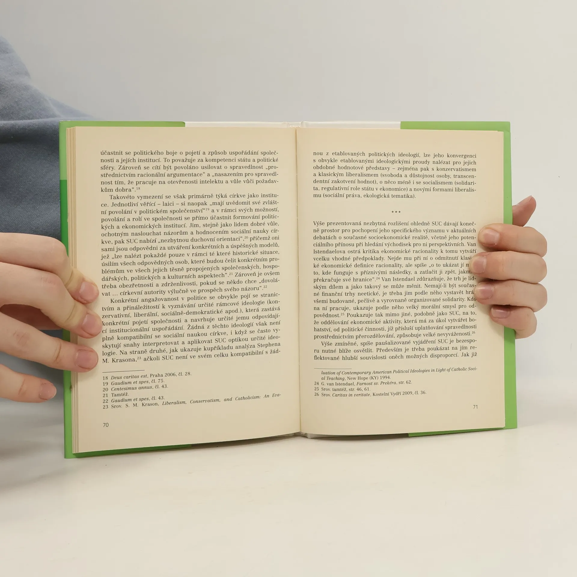 Hlavním tématem je sociální jistota jako organizovaná solidarita. Van Istendael se zamýšlí nad tím, zda a jakým způsobem mohou Evropané bránit hodnotu sociální státnosti, případně jak je možné uchovat dědictví solidarity v prostředí ultraliberálního kapitalismu. Autor poměrně ostře kritizuje některé evropské instituce, MMF a finanční trhy, které podle něho využívají finanční a ekonomické krize k tomu, aby tento pilíř oslabily či porazily. Jeho text - bez ohledu nakolik se s ním čtenář dokáže identifikovat - lze chápat jako zajímavý vklad do široké mozaiky názorů, které v současných diskusích v souvislosti s ekonomickou či hospodářskou krizí posledních let zaznívají. Van Istendaelovy úvahy doprovázejí texty tuzemských autorů Jakuba Jinka, Jindřicha Šrajera a Romana Míčky, členů Pracovní skupiny pro sociální otázky při České biskupské konferenci, které Van Istendaelovy myšlenky zasazují do širších sociálních, filozofických a teologických souvislostí, a to i s ohledem na specifika českého prostředí.