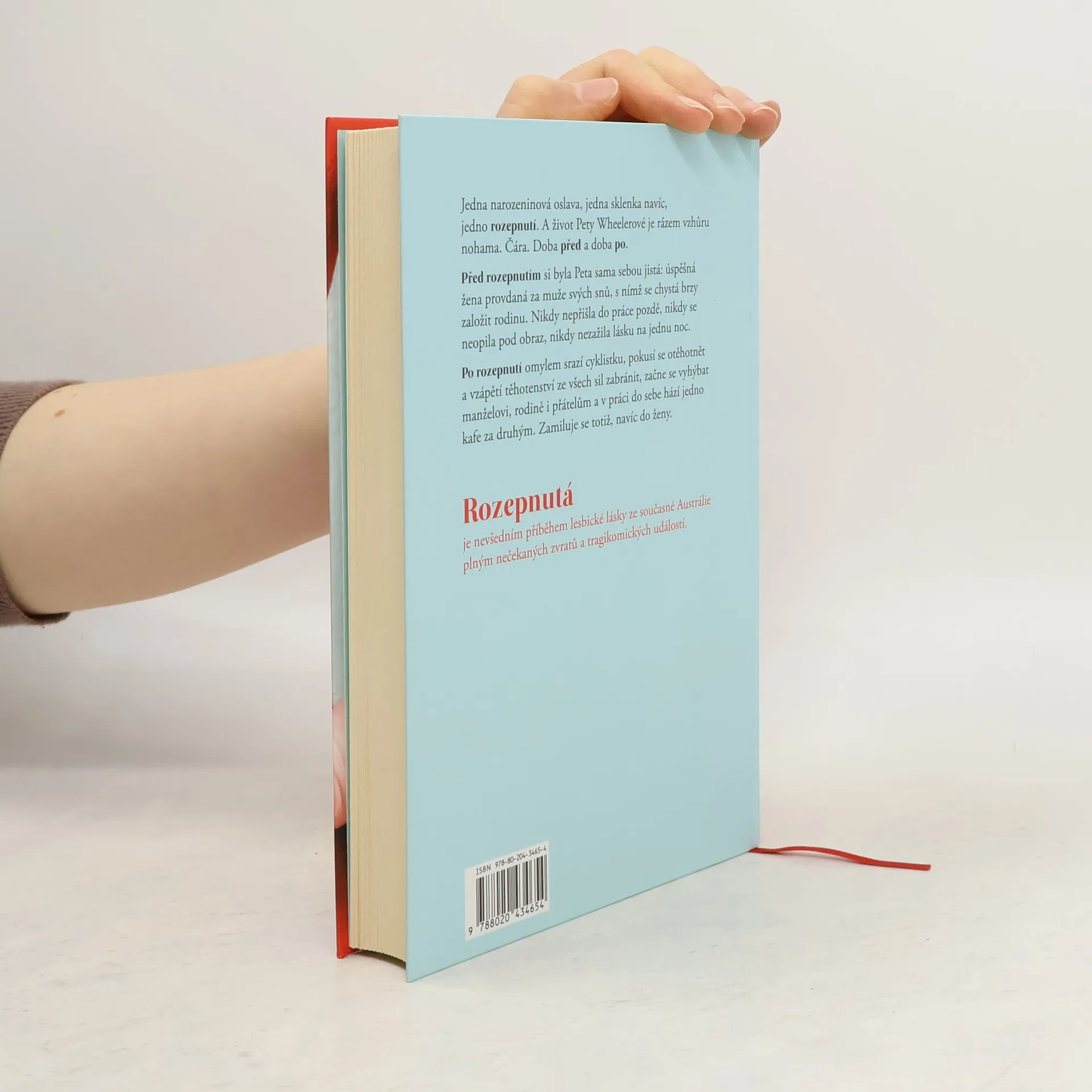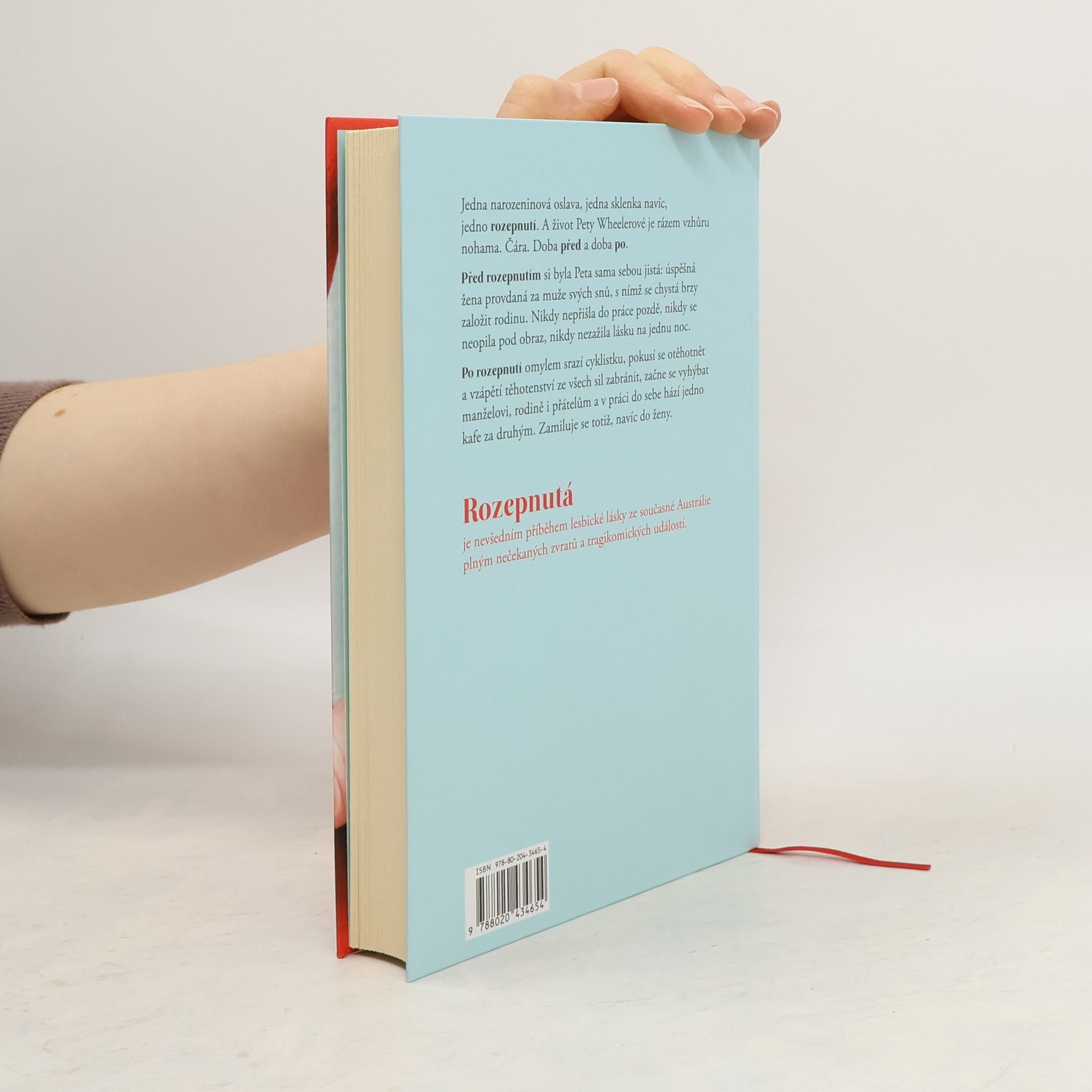 Romantická komedie o ženě, jež potká ženu. A nestydí se… Petě Wheelerové se onoho osudného večera navždy změnil život – teď ho dělí na dobu „před pohovkou“ a „po pohovce“. Před pohovkou si byla Peta sama sebou jistá: pětatřicetiletá úspěšná žena provdaná za muže svých snů, s nímž se brzy chystá založit rodinu. Nikdy nepřišla do práce pozdě, nikdy se neopila pod obraz, nikdy nezažila lásku na jednu noc. Po pohovce omylem srazí cyklistku, pokusí se otěhotnět a vzápětí těhotenství ze všech sil zabránit, začne se vyhýbat manželovi, rodině i přátelům a v práci do sebe hází jedno kafe za druhým. Zamiluje se totiž, navíc do ženy. Rozepnutá je netypickým příběhem lesbické lásky ze současné Austrálie plným nečekaných zvratů, tragikomických událostí i lehké erotiky. V rámci svého žánru se však zajímavým způsobem dotýká i dosud mnohdy tabuizovaného tématu vnitřního i vnějšího coming outu a všeho, co ho provází.