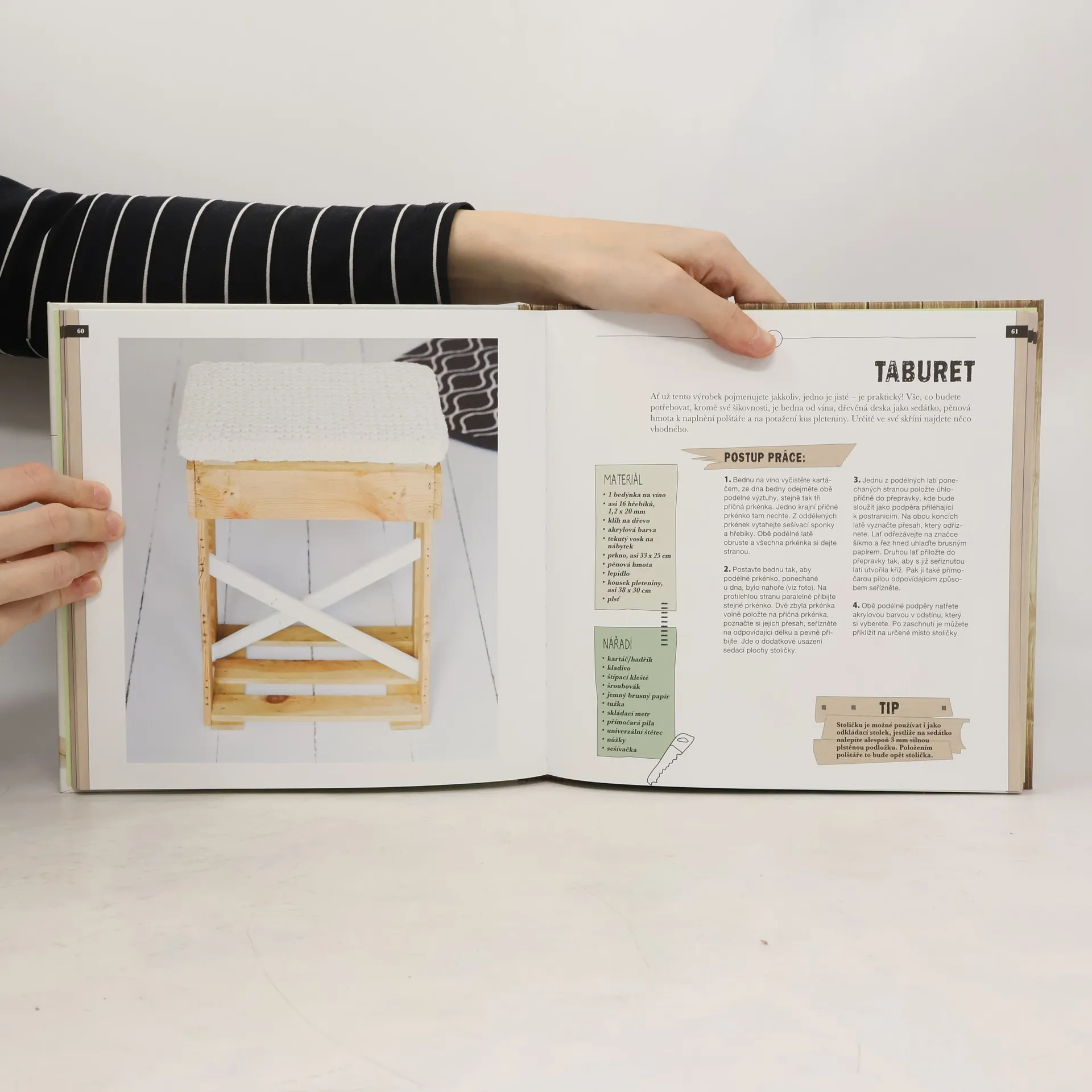 Je spousta možností, jak a k čemu druhotně využít různé dřevěné bedýnky a přepravky na víno nebo jiné nápoje, lísky na ovoce nebo velké palety. Možná také při pouhém pohledu na dřevěnou přepravku vidíte servírovací stolek nebo svícen, možná si na balkóně rovnáte palety na výrobu pohovky - v tom případě jste otevřeli tu správnou knížku! Podle návodů vdechnete starým dřeveným bednám a paletám nový život! Krok za krokem budou pod vašima rukama ze zbytků beden a bedýnek vznikat nové a zajímavé kousky nábytku a bytových doplňků, jako jsou police, svícny, lampy. Velké europalety umožní výrobu větších projektů, například různých stolů, stolků, lavic a pohovek.